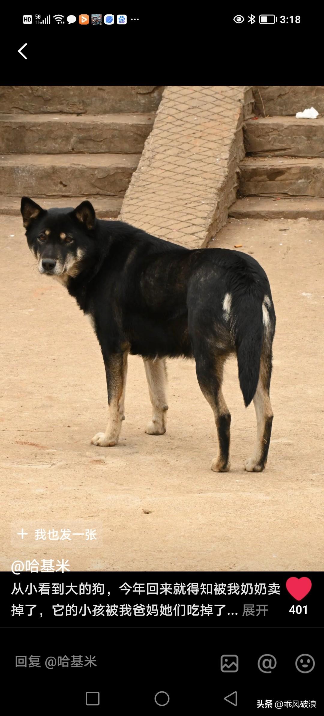 从小看到大的狗狗,今年从外面打工回来后,被家里人卖了。它生的一窝小狗,也被我爸爸吃了。我深感痛心,时常想念它的模样。田园犬狗狗