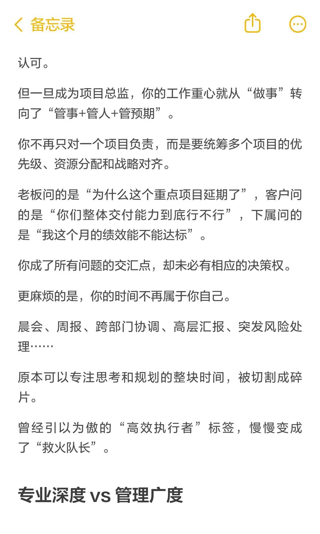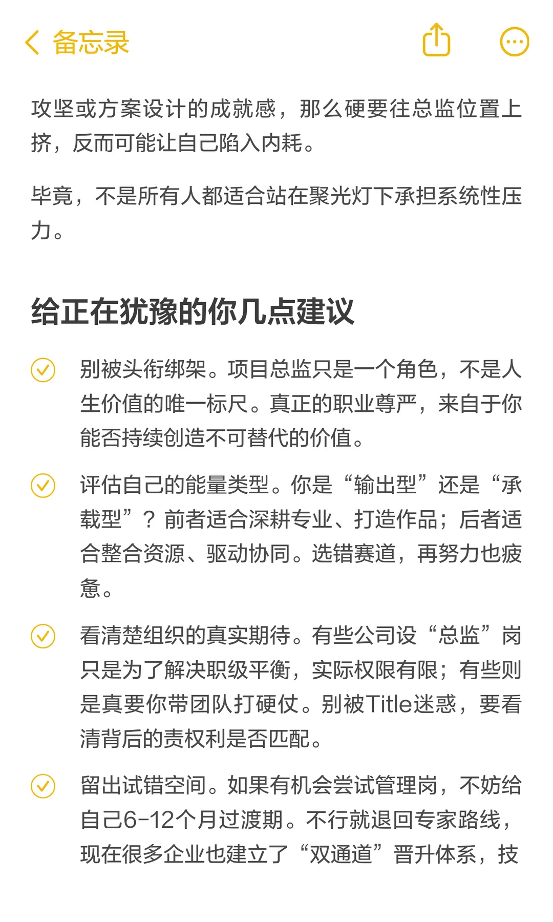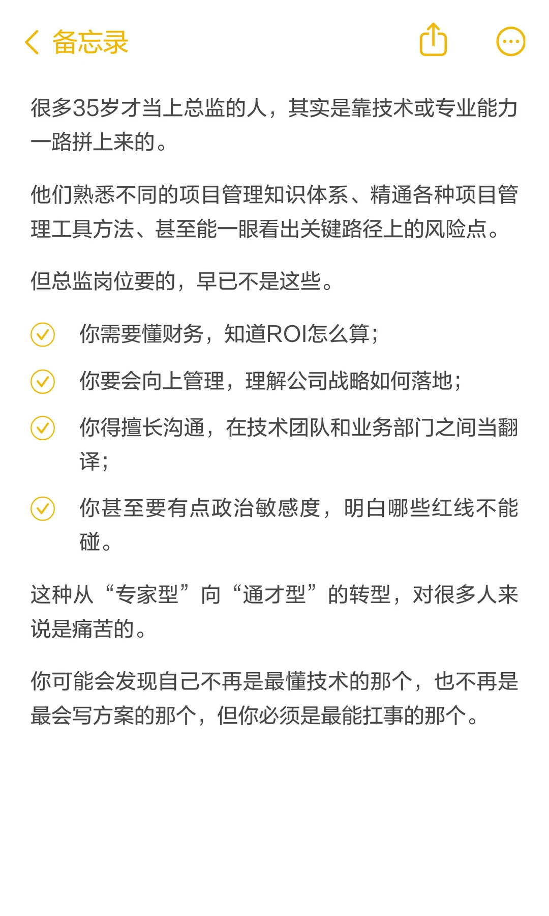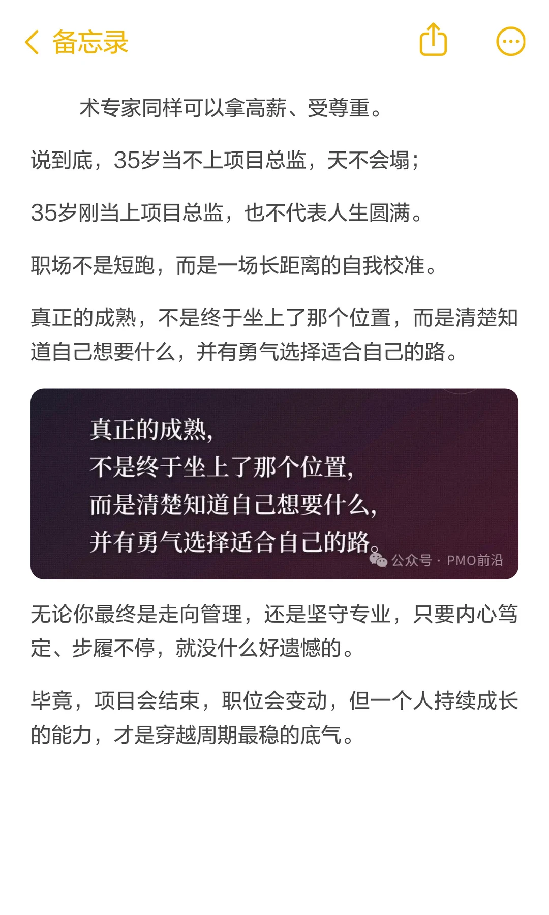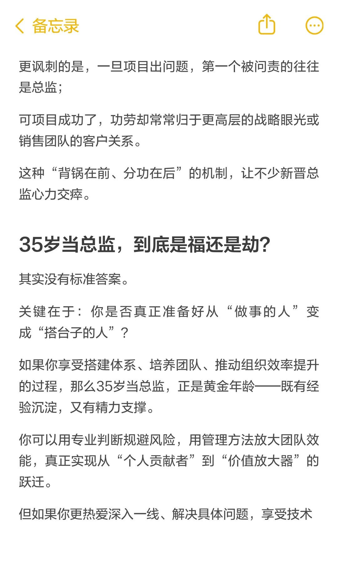 以前总觉得35岁还没当上部门经理或者项目总监,就没啥发展了; 后来才发现,35岁才当上总监,那才真是让人心疼[嘿哈] 毕竟,项目会结束,职位会变动,但一个人持续成长的能力,才是穿越周期最稳的底气。