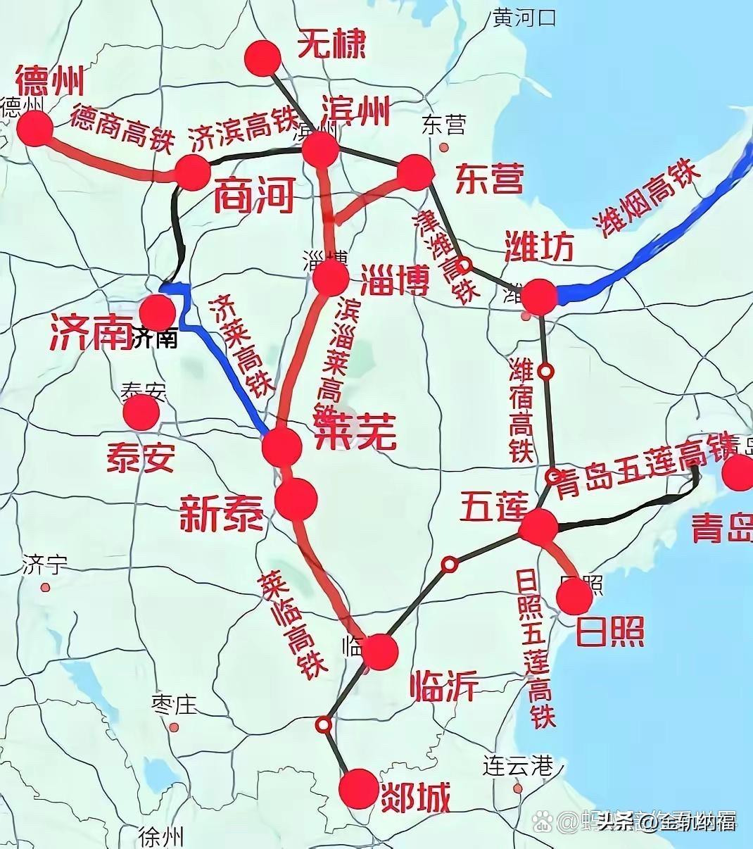 “十五五”期间,山东省规划建设的三条高铁已经非常的清晰了。 ①德商高铁 ②莱临高