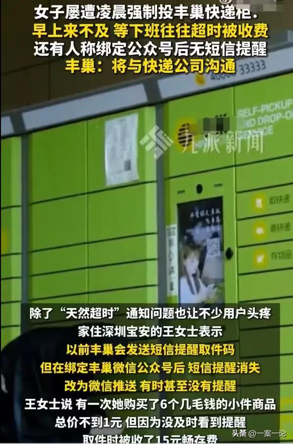 广东深圳,女子买了6个几毛钱的小件东西,不到1元钱,东西也送到她住的地方了,却因为包裹寄存在小区的包裹柜,她被收了15元的畅存费,她很是困惑,另外,这些快递员,常常在凌晨强制将包裹投放包裹柜,很多人上班来不及取,下班超时了,导致超时被收费,这让很多人不满,包裹柜的公司却说,这些快递小哥并不是他们的员工,所以很难控制这种行为。 王女士看到几个小件的东西挺漂亮的,只要几毛钱,这么便宜的东西,她随手就买了6个。 东西买了之后,她倒是把这件小事给忽略了,东西送到他们小区之后,快递小哥就把她的小包裹放进了包裹柜,王女士一忙起来,都没有及时看到提醒,等她想起这么一回事时,她去取件,已经被收了15元的畅存费。 不到一元的东西,买的时候挺开心的,去取件才觉得很不是滋味,她心里特别不平衡,明明不到一元的东西,最后她付了15元。 而这一切,归咎到底,仅仅只是因为东西放进了小区的包裹柜。 这个包裹柜,让王女士感到很苦恼,他们小区是具备送货上门的条件的,业主们买的东西,快递小哥可以送到小区,然后存放到他们小区的包裹柜。 这包裹柜方便倒是很方便,但自从有了这些包裹柜,反而给业主们带来了很大的麻烦,业主们包裹存入包裹柜,超时是要收费的,本来这些包裹柜会发信息提醒,让业主尽快地取件,后来短信提醒消失了,改为别的方式的推送,有时候又没有提醒。 这就给业主们带来很大的麻烦,业主们想起自己这件事情,往往就已经超时了,一超时就被收费,这给业主们带来了很大的影响。 其中,深受其扰的林女士,一说起这件事情也是非常的生气,自从她入住这里,每次取包裹都是她的烦心事。 她也不知道这些快递小哥,送包裹来之前,为何没有提前沟通,送过来之后就直接投入小区的包裹柜。 这样的操作本来也没有什么问题,奇怪的是这些快递小哥常常是深夜把包裹送过来,然后放入包裹柜。 这就带来了一个问题,一般到了快递小哥把包裹放进包裹柜的时间,常常已经是深夜11点左右,那时候很多业主都已经睡着了,就不想起床取快递。 等他们一觉醒来,大家都是匆匆忙忙地赶着去上班,谁也不愿意先把快递取了,拿回家再去上班,这样太费时间了。 他们往往只能下班之后才来取件,这样问题就来了。 他们小区的包裹柜取件时间是有规定的,一般情况下超过12个小时,就要按0.5元收费,没有超过12个小时,就按照12个小时计费,最高是三块钱。 按照快递小哥投放的时间,是晚上11点左右,一般情况下业主们早上不取件,他们下班之后都会在6点左右,时间早就超过了12个小时,即使快件是在18小时内是免费的,但是等他们取件时,往往就已经接近或者超过18个小时了。 下班的事情谁也说不定,有时候加班,有时候下班路上堵车,或者跟朋友外出聚餐,如此一来,都耽搁了回来取件的时间,他们都得交存放费。 林女士特别不满这一点,他也曾经向快递小哥质问过,为何要在深夜投放,他们只是轻描淡写地说了一句,因为比较方便。 她当然不认可快递小哥说这样的话,她也常常怀疑快递小哥和小区包裹柜有关系。 但是小区包裹柜的负责人说,快递小哥并不是他们的员工,他们也很难控制快递小哥的行为。 据他们所知,快递小哥之所以会夜间投柜,是因为快递小哥往往在夜间加班,所以他们才不联系业主,直接投柜。 针对业主们遇到的困惑,包裹柜的负责人说,我们会和快递公司沟通,减少快递小哥夜间投柜,同时他们会进行信息提醒,让业主们尽快取件。 可以说, 王女士和林女士所遇到的事情,都并非是自愿的,外卖小哥的行为,并没有按照当事人的真实意愿,进行投柜,她们可以拒绝。 《民法典》第143条规定:具备下列条件的民事法律行为有效: (一)行为人具有相应的民事行为能力; (二)意思表示真实; (三)不违反法律、行政法规的强制规定,不违背公序良俗。 小区的包裹柜是为了方便业主们,不过包裹柜有时间,超过时间需要交费,在这种情况下,快递小哥就应当征得业主们的同意才投柜。 那么你对这样的事情有何看法呢?