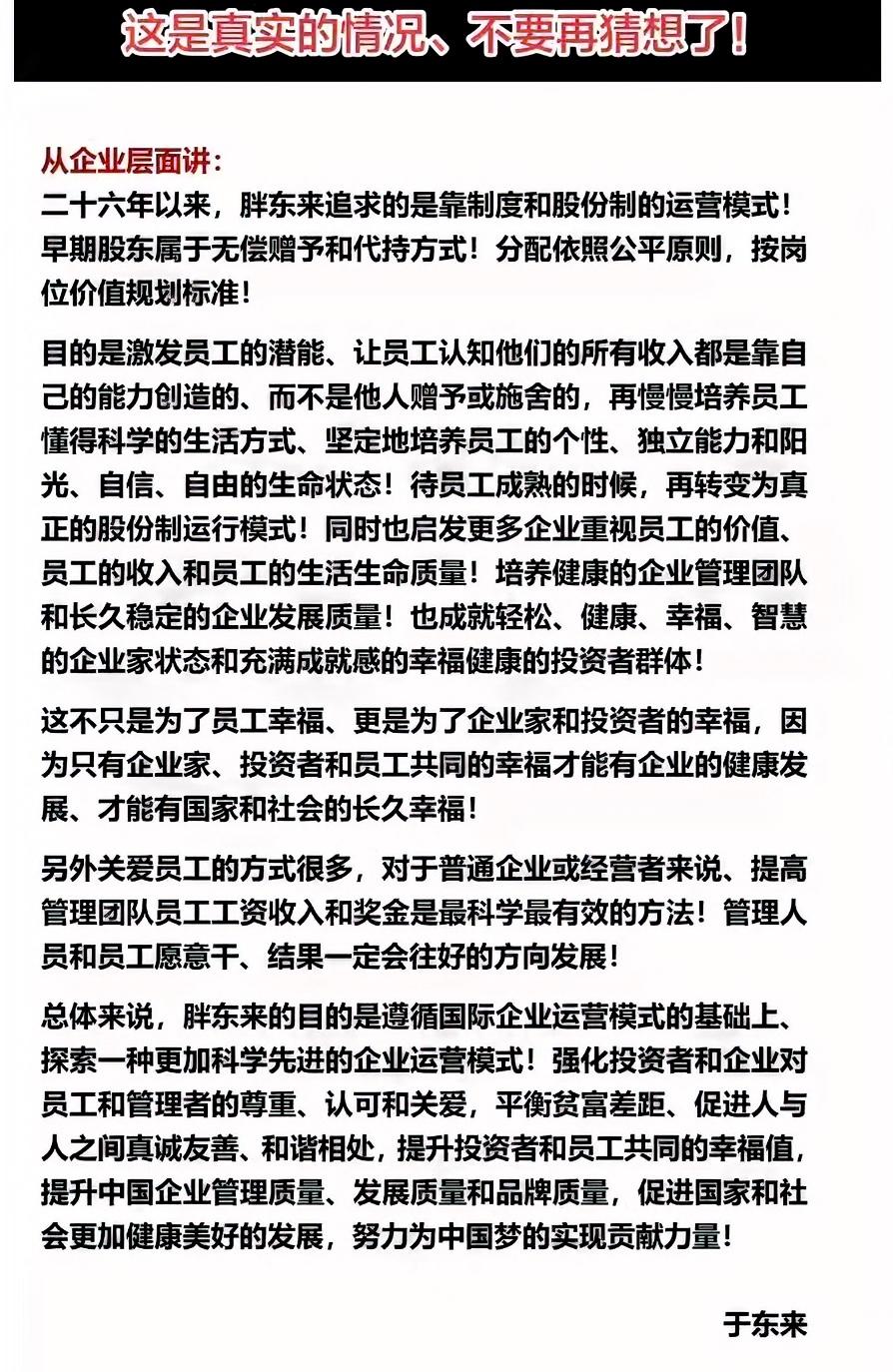 胖东来40亿分配:一次商业理想主义的落地 当其他企业还在为“降本增效”的话术绞尽脑汁时,胖东来用一份40亿资产分配方案,把“企业与员工的关系”拉回最朴素的逻辑。3月11日,创始人于东来在社交平台的公开回应,让这场酝酿26年的“分配实验”尘埃落定,也再次让外界读懂了这家河南零售企业的底层逻辑。 这份分配方案没有虚头巴脑的PPT,而是实打实的资产划分:12名店长每人2000万,2名技术大拿每人1000万,8633名普通员工人均20万。总计约37.93亿元的资产,覆盖10194名员工,没有刻意向顶层倾斜,反而把近半数蛋糕分给了占比87.4%的一线员工。这样的分配比例,在追求资本收益最大化的商业环境里,显得格外“另类”。 但这从来不是一次临时的“撒钱”,而是于东来26年商业实践的终极呈现。早在2000年,当多数零售企业还在用低工资、高强度压榨劳动力价值时,胖东来就开始尝试反向的分配逻辑——把利润按照岗位价值还给员工。于东来从不把这定义为福利,而是看作“激发潜能的长期主义”:让员工清晰认知到,自己的收入源于能力创造,而非他人赠予。 这种理念,让胖东来的“分钱”最终变成了“分心”。在很多企业,员工关爱还停留在节日礼品、生日福利的表层;而在胖东来,关爱被具象化为尊重与信任的“货币”。一线员工落袋的20万,不是简单的数字,而是对劳动成果的确认:它能为孩子凑齐首付,能为养老提供保障,能让普通职员真切感受到自己是企业的主人,而非打工者。 这份方案的背后,还有更耐人寻味的商业选择。就在方案公布前,于东来官宣两大重磅决定:春节后正式退休,管理层六十岁前退出权力岗位;胖东来永不上市,放弃快速扩张的资本盛宴,定位“学校式企业”,专注样本目标完成。 这两条决定,堪称当下浮躁商业圈的“反操作”。不上市,意味着放弃资本扩张的短期红利;60岁退休,意味着要构建不依赖个人的管理体系。但于东来看得很透:企业的健康长久,从来不是资本的独角戏,而是企业家、投资者与员工的共赢局。这套逻辑,让胖东来跳出了“老板说了算”的传统桎梏,走向了“靠制度运转”的长期模式。 网友刷屏的“还招人吗”,本质上是对这种公平分配的向往。人们追捧的从来不是40亿的数字,而是“多劳多得、公平分配”的朴素真理。胖东来的不可复制,或许不在于于东来的“理想主义”,而在于它把理想落地成了可执行的制度:从2000年的利润分配到如今的资产划分,这套机制一直在自我迭代,而非靠创始人的个人情怀支撑。 在资本逐利的时代,胖东来用行动回答了一个关键问题:企业的核心价值,究竟是为资本增值,还是为劳动者创造价值?于东来的答案很简单:提高工资奖金,是最有效的关爱;公平分配价值,是企业长青的根基。 当越来越多企业开始思考这个问题,或许“胖东来式温暖”就不再是个例。毕竟,商业的终极意义,从来不是堆砌数字,而是让每一个付出劳动的人,都能收获应有的回报。