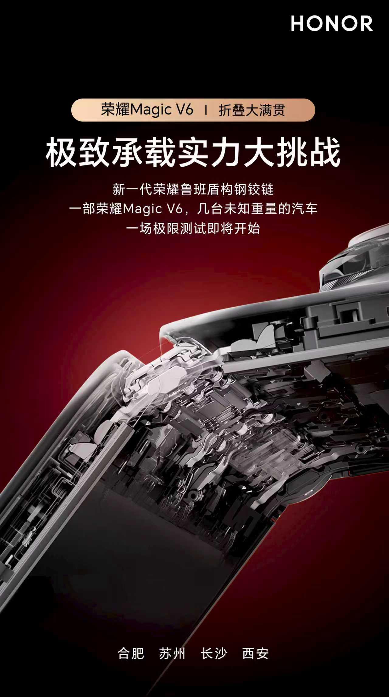 关注荣耀折叠屏的朋友都知道,鲁班铰链一直是荣耀的王牌技术,荣耀Magic V6 这次直接把这张王牌,升级到了新高度! 新一代鲁班盾构钢铰链,听名字就知道不简单,用的是盾构机级别的钢材,结构强度和耐用性直接拉满。3月14-15日四城开启的极限挑战,直接用汽车碾压来验证实力,这波直接把折叠屏铰链技术卷到了天花板!