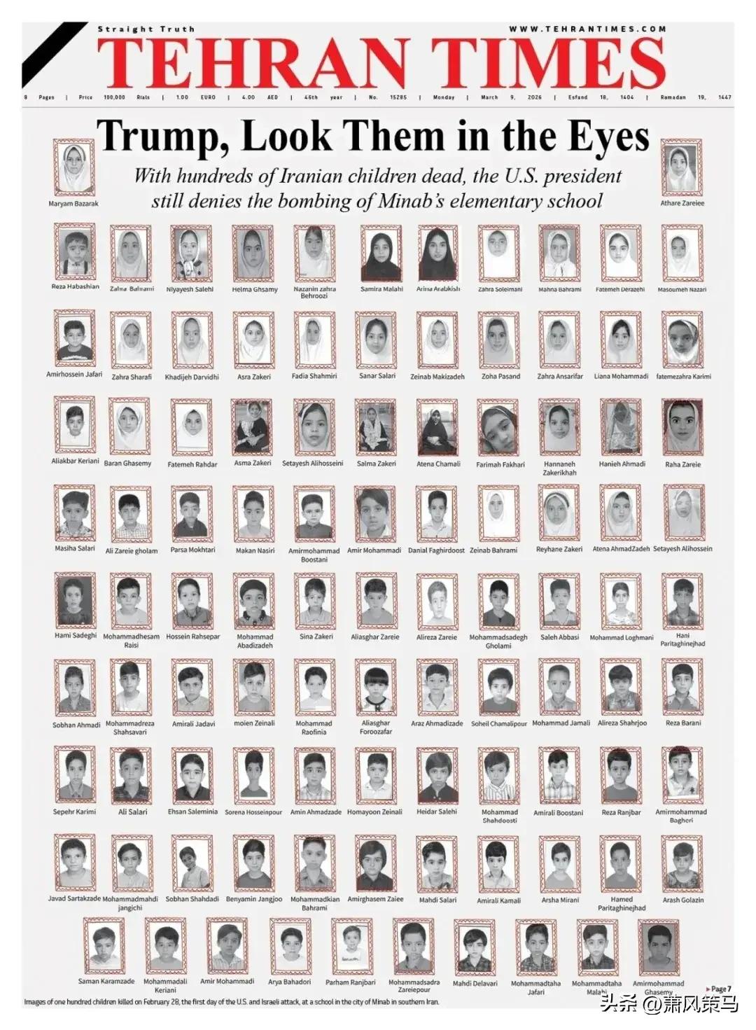 炸了!美军上将终于承认:伊朗小学惨案是我们干的! 2月28日,米纳卜市那所小学的废墟下,埋着165个鲜活生命,绝大多数是如花的女童 !铁证如山,美军“战斧”导弹残骸上“美国制造”的字样还清晰可见,美军欧洲司令格林克维奇3月12日在国会听证会上,终于松口认账 ! 一句“一系列错误和失误”就想洗白?用着过时情报,把学校误标成军事基地,这哪是失误,分明是草菅人命!特朗普还想甩锅给伊朗,真是虚伪到极致 ! 战火无情,稚子何辜?这种拿和平当儿戏、拿生命当代价的行径,天理难容!