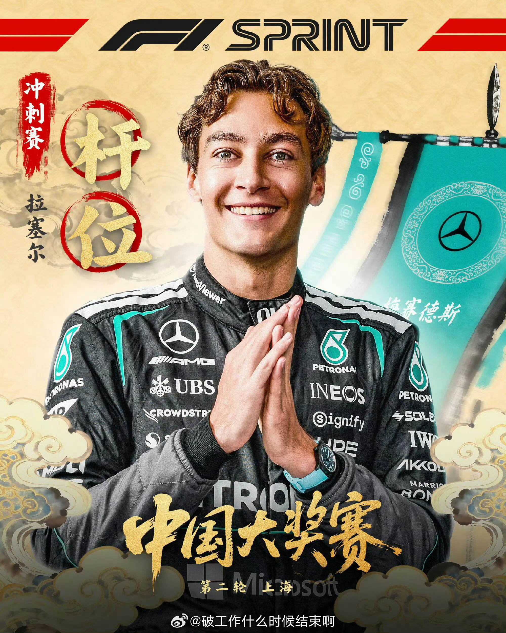 🏎️奔驰车队拉塞尔夺得杆位,安东内利第二梅奔双男主包揽冲刺赛排位一二这狠AMG