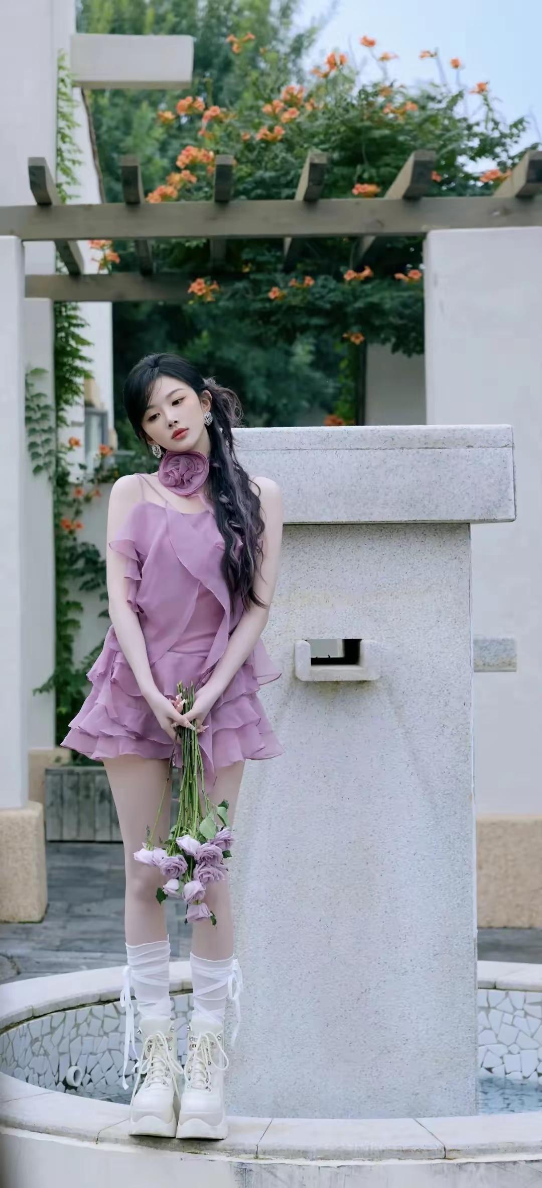 微笑的少女与绿花的浪漫邂逅🌸😊
