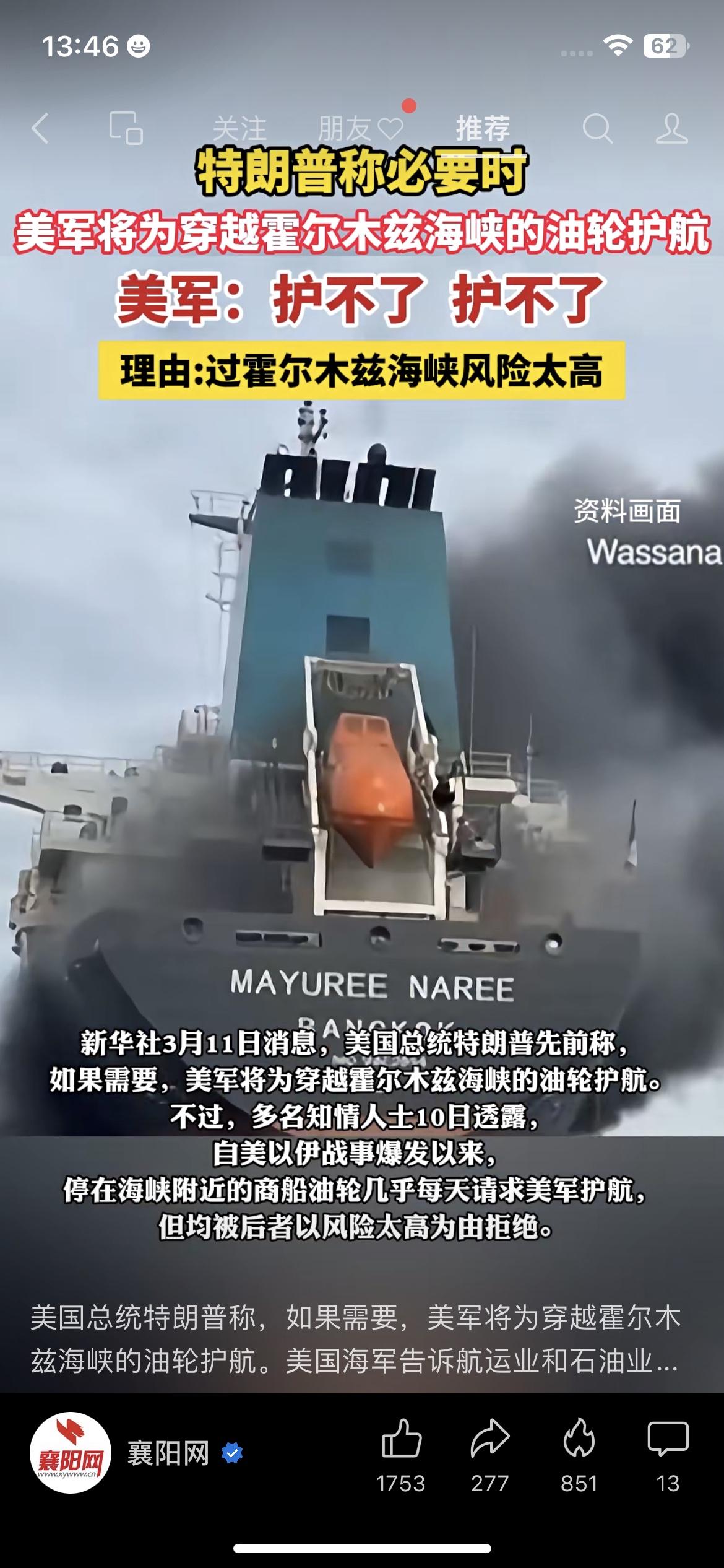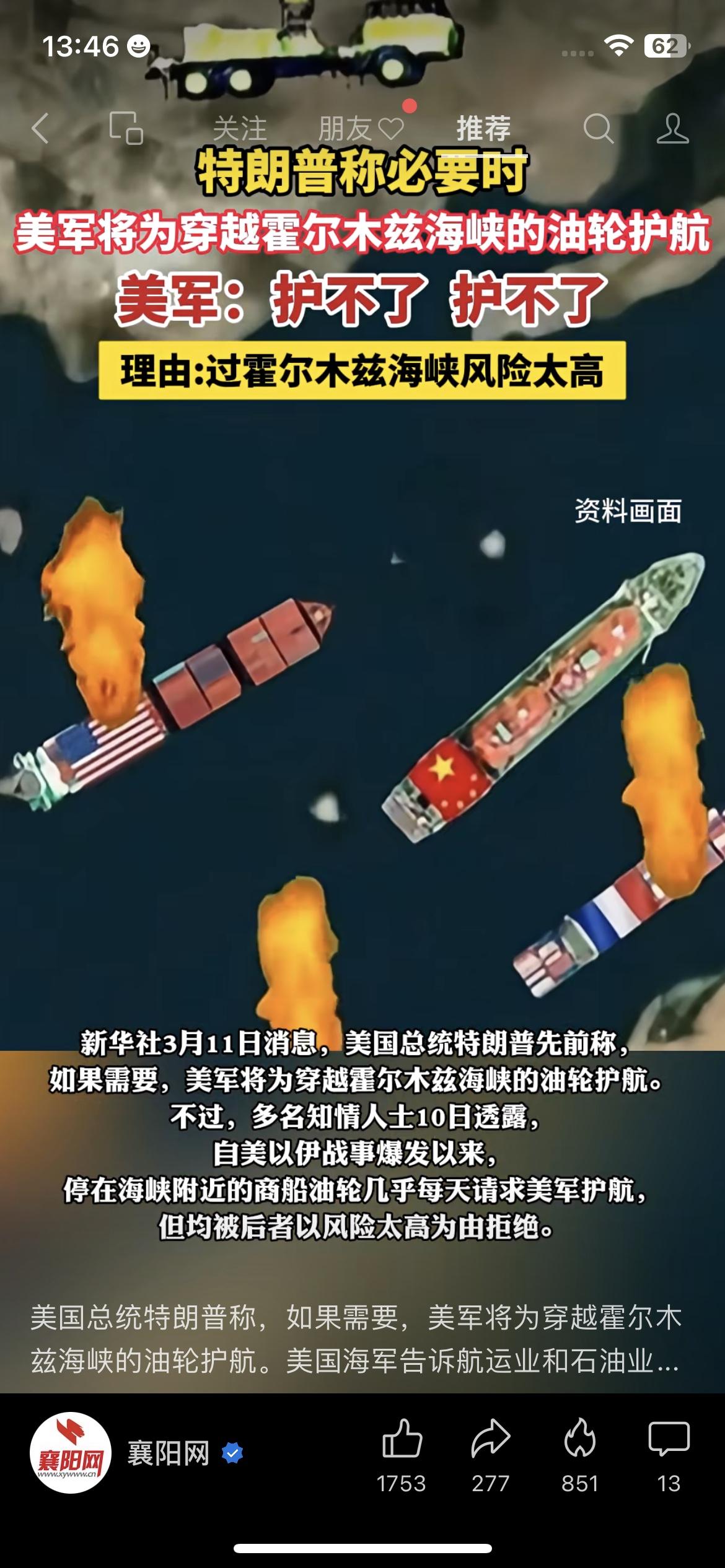 打脸!特朗普喊着要护航,美军直接说:护不了 大型打脸现场!特朗普说,必要时美军会为霍尔木兹海峡的油轮护航! 可知情人士爆料,美以战事爆发后,每天都有油轮求美军护航,全被拒绝了,理由就是“风险太高”。 一边是高调放话,一边是实际认怂,美军到底在怕什么?霍尔木兹海峡的护航难题,这下更无解了! 特朗普护航 霍尔木兹海峡