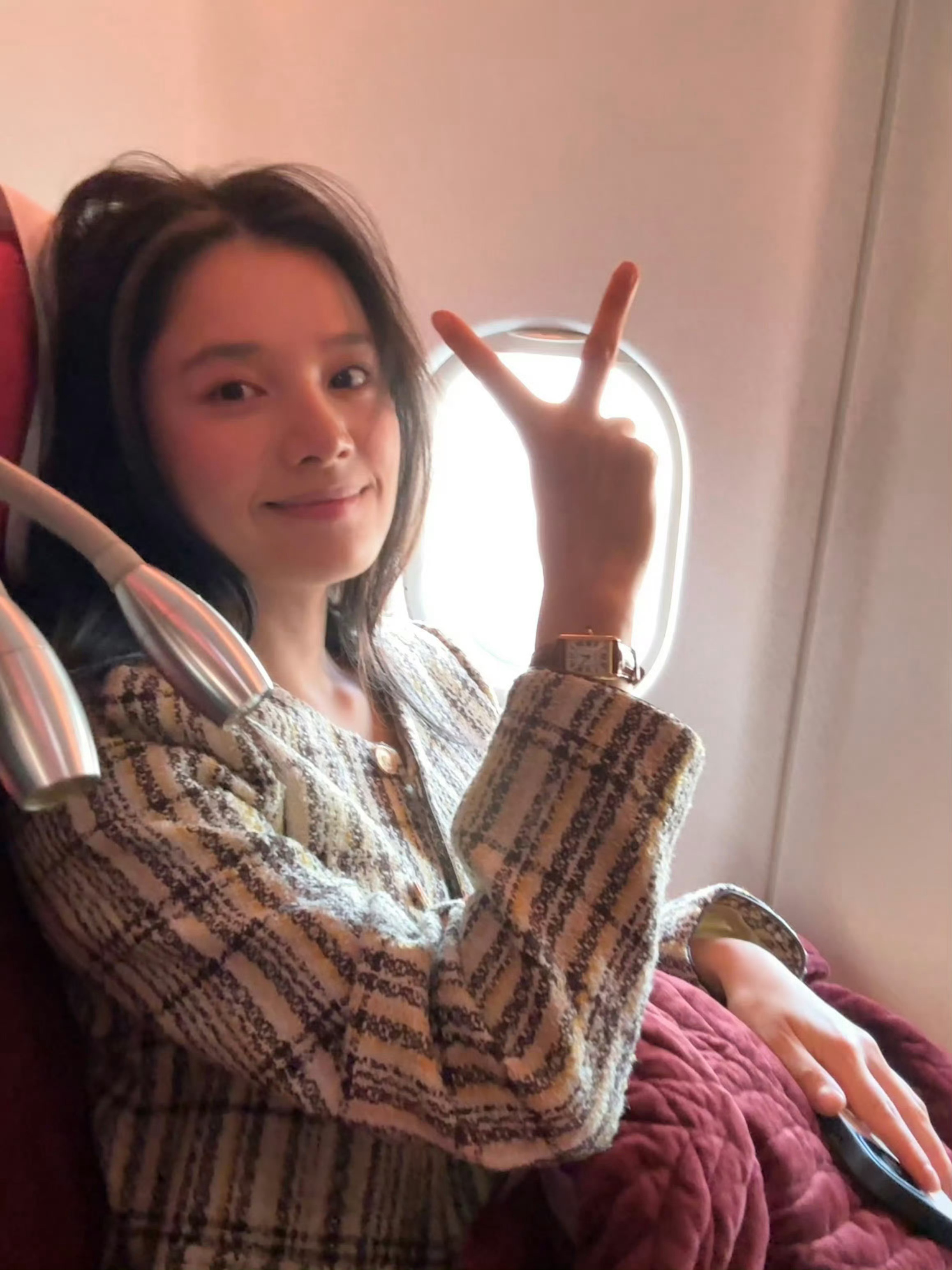 柳智敏宁艺卓机场出示护照图
