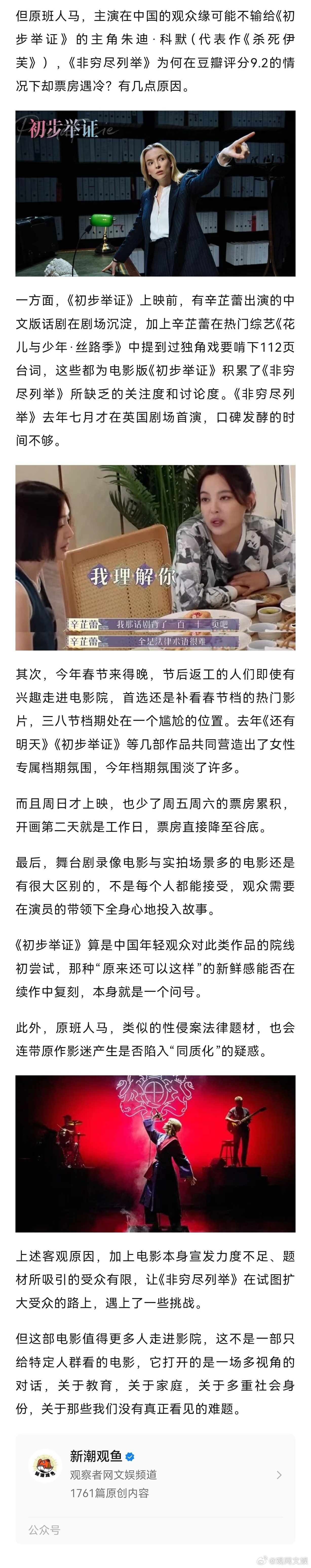 只不过,《非穷尽列举》上映五天刚破600万的票房,与其同款编剧、导演的前作《初步举证》3538.4万的中国内地票房成绩相比,有着不小的差距。↓↓↓