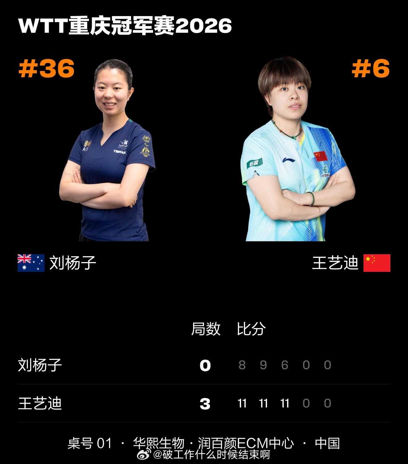 🏓王艺迪3-0(11-8、11-9、11-6)刘杨子