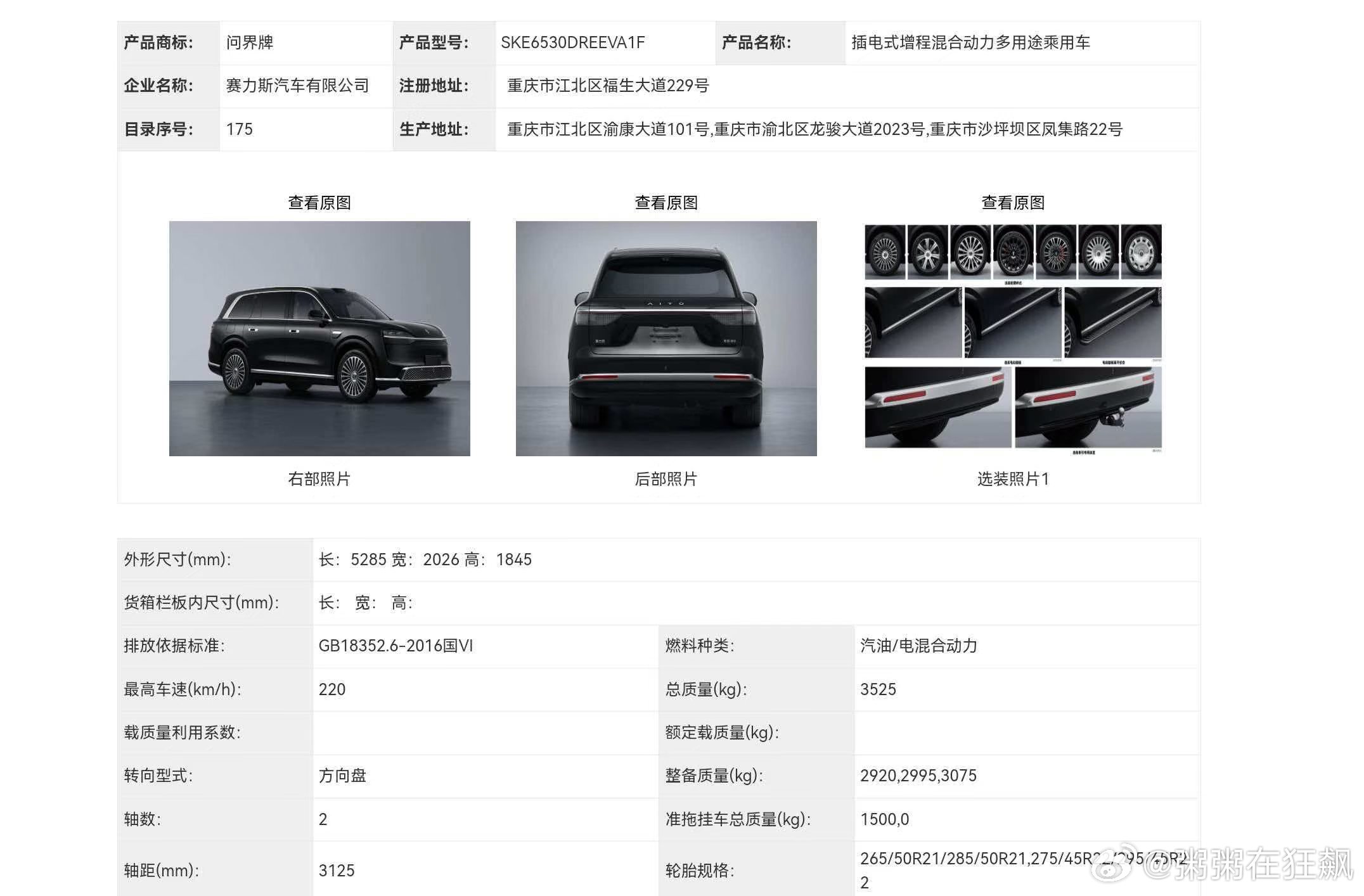 问界M9新款也来了外形尺寸(mm):长:5285宽:2026高:1845轴