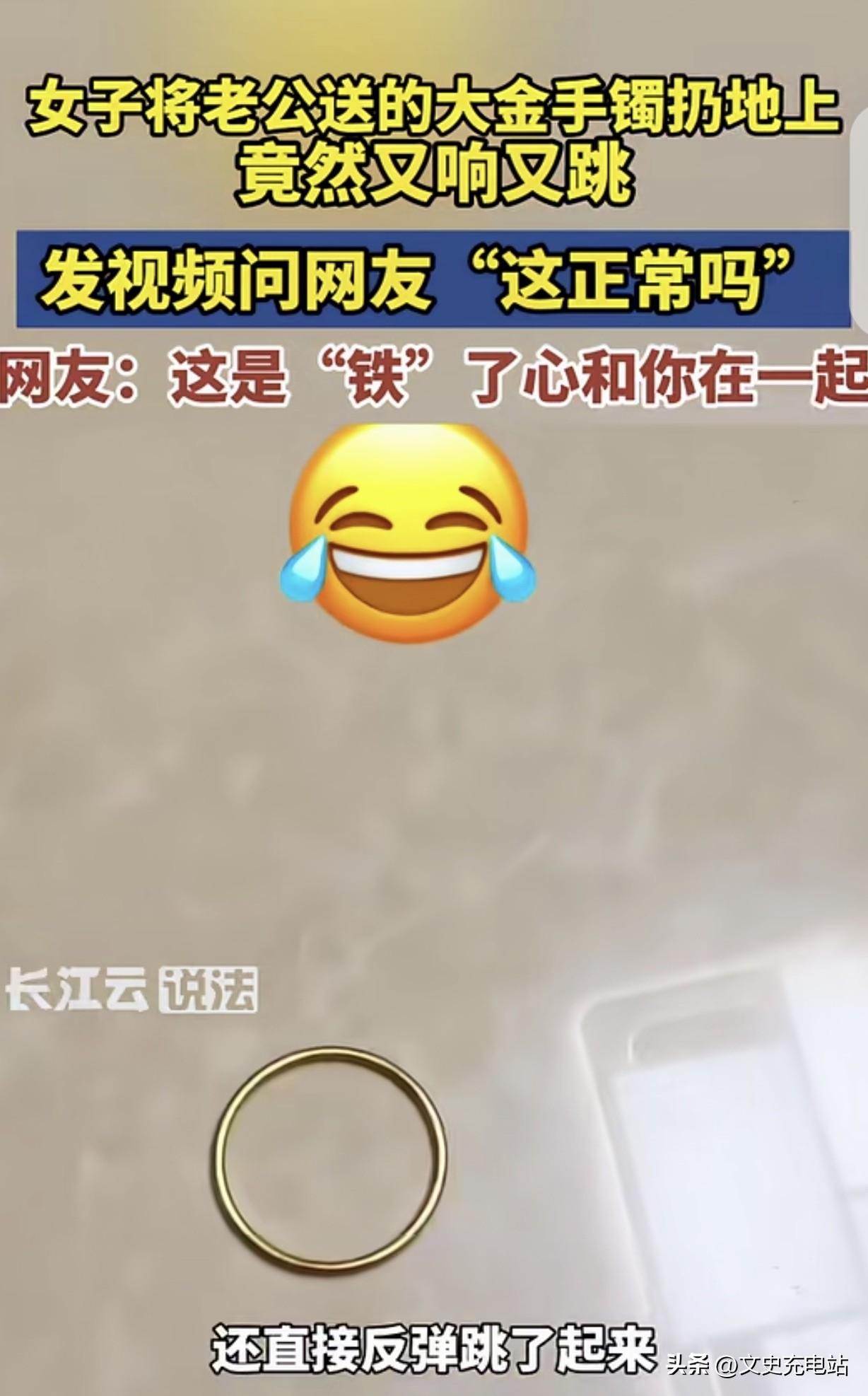 “露馅了!”3月11日报道,浙江一女子3.8节收到老公送的大金手镯,她随手把手镯扔地上测试真假,不料,手镯落地时,不仅声音清脆,还弹跳起来,女子顿时蒙圈,俗话说金不响银不跳,而她的手镯又响又跳,这是个什么东西?她怀疑老公拿假手镯忽悠自己。网友;这是“铁了心”要和你在一起呀![太阳] 三八节后,浙江一位女士把刚收到的金镯子往地板上一扔,镯子落地发出清脆响声,还轻轻弹了起来。 她以为撞上了假货,其实这个判断从一开始就走错了方向。 金不响银不跳这句话,是从传统实心黄金的物理特性里总结出来的。 实心金件密度高、延展性强,落地后动能被材料吸收,声音发闷,几乎不弹,但这个经验只适用于特定工艺,并不是黄金鉴别的通用规律。 现在市面上常见的3D硬金、古法空心镯等款式,内部结构中空、壁厚极薄。 同样的重力作用下,薄壁结构更容易产生震动,落在硬质地面上自然会发出清脆的金属声,甚至反弹。这是结构力学的基本现象,和含金量无关。 想知道一件首饰是不是真金,有几个实际可操作的方法。 看钢印,正规黄金制品上会标注"足金999"或"Au750"等纯度标识,位置通常在扣头或内圈;掂重量,真金密度约为19.3克/立方厘米,同体积下比铜、合金明显压手。 最直接的是拿去金店,用X射线荧光检测仪做成分分析,30秒至90秒即可出结果,不损伤饰品。 听声音、看弹跳,只是民间流传的粗略经验,在工艺多样化的今天已经失效。 用过时的标准去衡量新工艺,误判是必然的结果。拿到贵重首饰,与其自己测试,不如交给专业设备判断,省时也省心。 一件礼物的价值,既在于其物质本身,也在于它所承载的心意与赋予的仪式感。 在追求仪式感和表达心意的同时,掌握基本的辨别知识,选择信誉良好的购买渠道,或许能避免许多不必要的误会。 当惊喜降临的那一刻,一份踏实的真知,或许比一个仓促的测试,更能让我们安心享受那份喜悦。