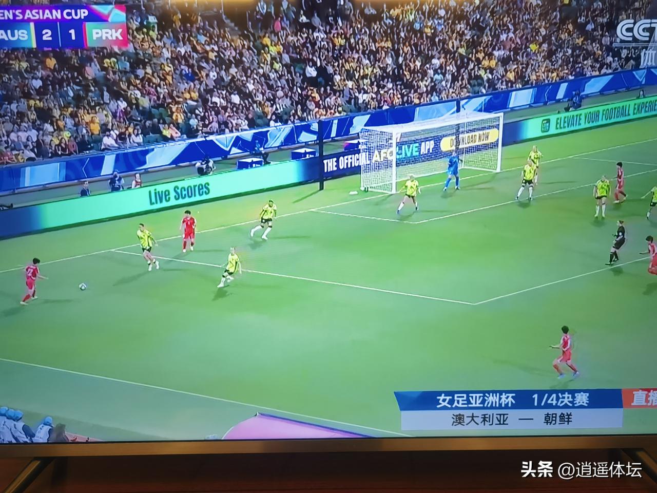 朝鲜女足踢疯了! 女足亚洲杯1/4决赛,澳大利亚和朝鲜女足先拉开了序幕!比赛进行到70分钟的时候,澳大利亚女足已经2:1领先朝鲜女足!通过这一场比赛,看出朝鲜女足的韧劲和不服输的精神体现的淋漓尽致!特别是下半场,朝鲜女足在澳大利亚女足的门前,频频发起进攻,澳大利亚女足门前是风声鹤唳,如果不是运气差的话,朝鲜女足已经扳平了比分!场上朝鲜女足队员们就像打了鸡血一样特别兴奋,不知疲倦的奔跑,让澳大利亚女足非常不适应!场上的对抗拼抢也非常激烈! 通过这场比赛,可以看出中国女足能拿下朝鲜女足那是多么的幸运!