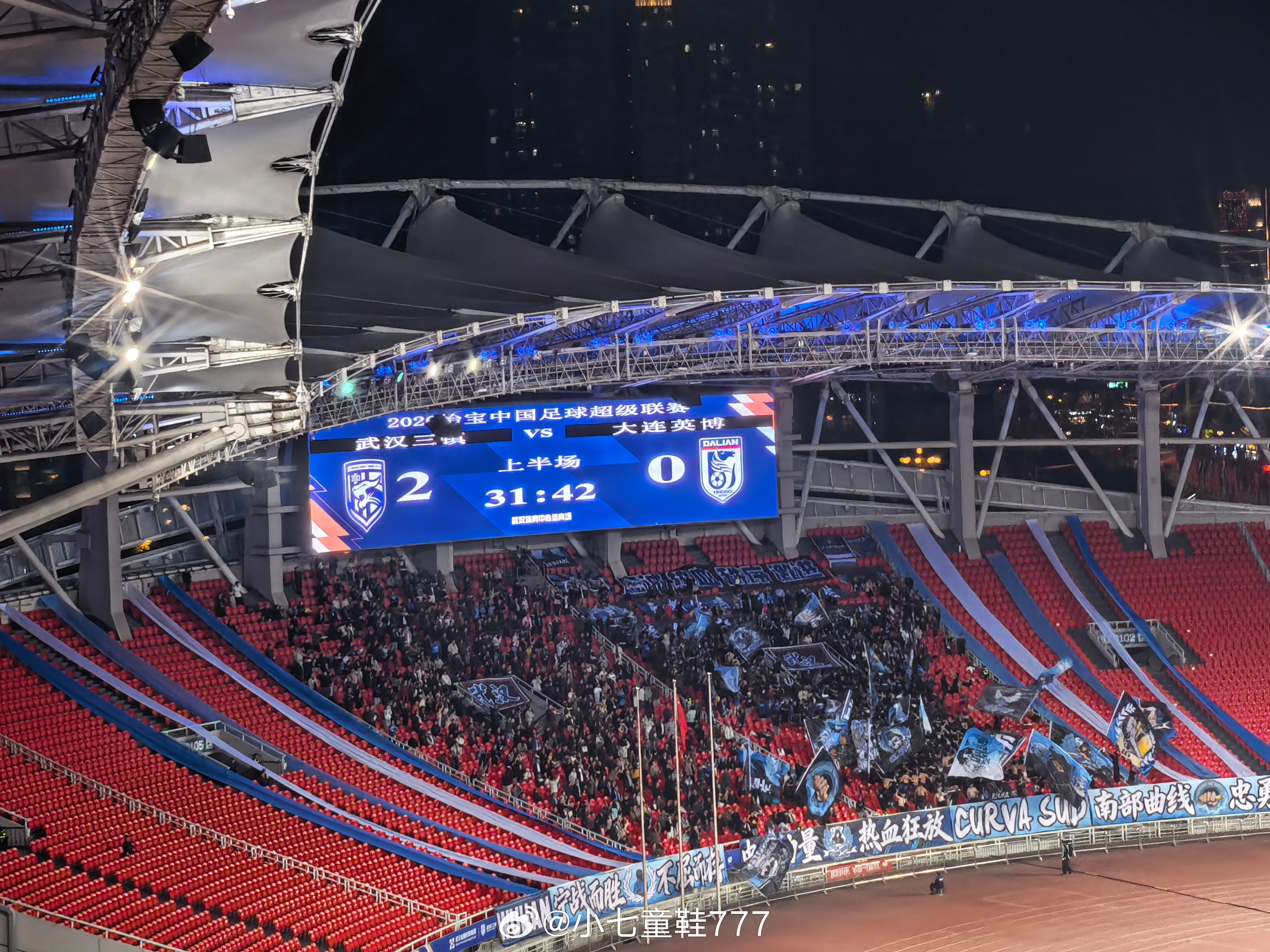 武汉三镇2-0领先大连英博