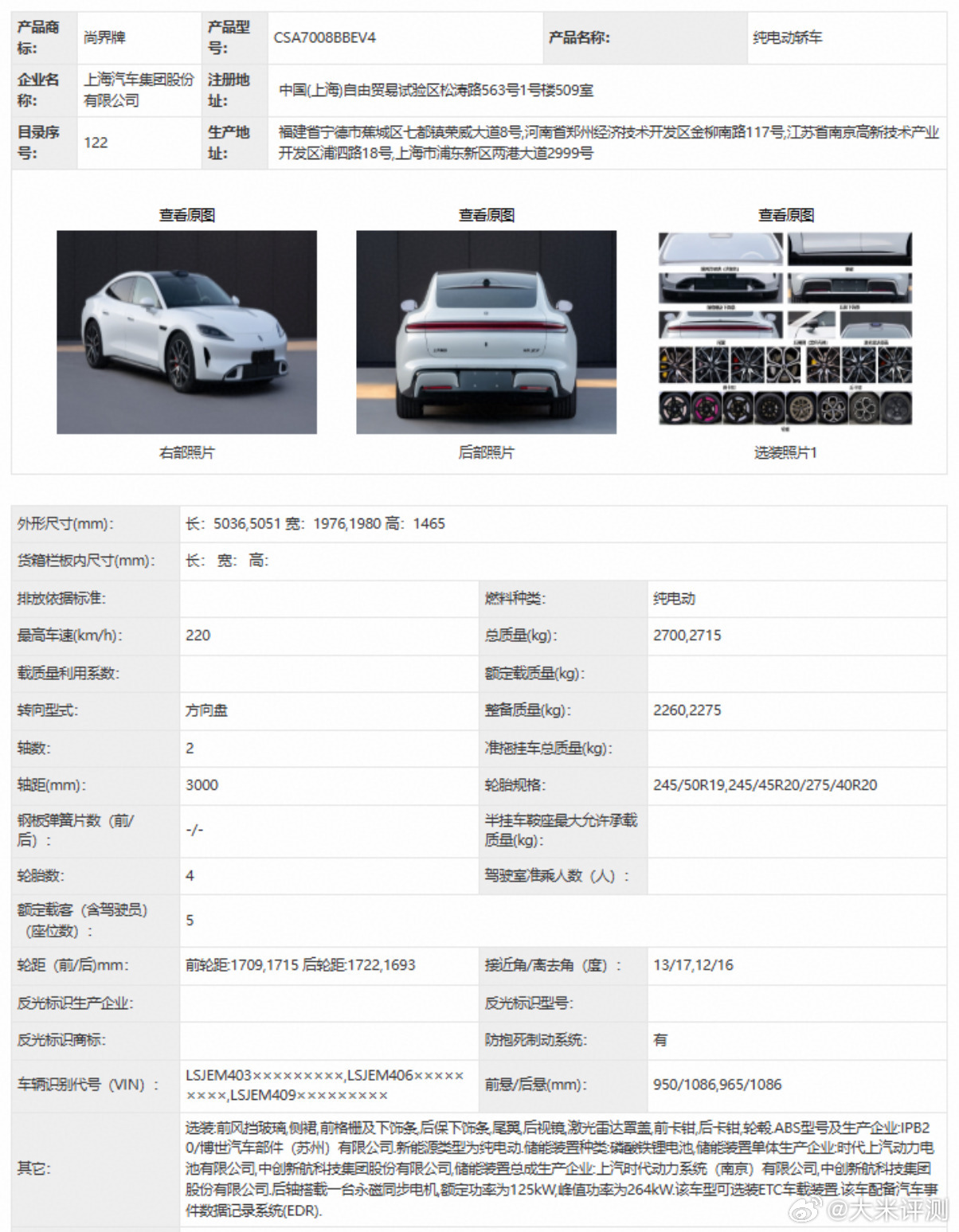 尚界Z7和Z7T的工信部证件照,大家觉得怎么样?车身尺寸:5036/5051mm x 1976/1980mm x 1465/1445mm,轴距都是3米~