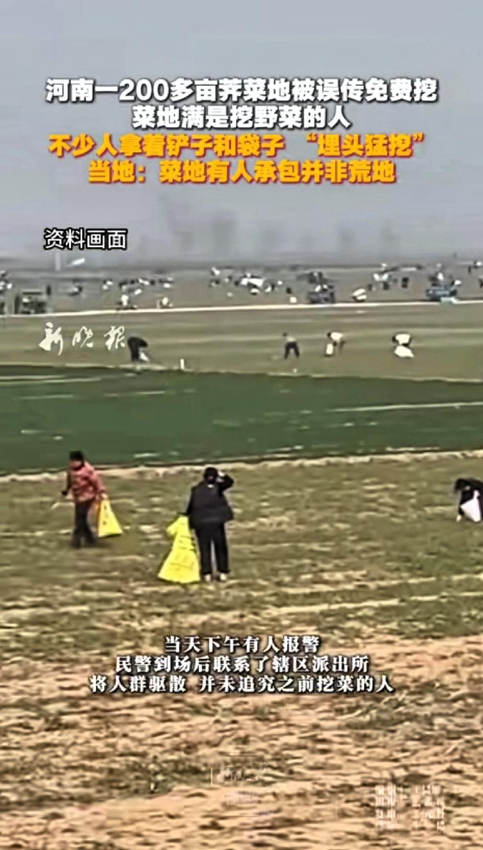 河南一200多亩荠菜地被误传免费挖,菜地满是挖菜的人!不少人拿着铲子和袋子,“埋头猛挖” 当地:荠菜地有人承包并非荒地。 河南这200多亩荠菜地被误传免费挖,现场那叫一个“壮观”!上百人扛着铲子、提着袋子“埋头猛挖”,周边道路都堵得水泄不通。 这片地本是承包户的,年前管理不当没采摘,结果被谣言一闹,全乱套了。 按亩产4000斤以上、每斤1.5元算,200亩地产值很可观,这下全被挖得七七八八,承包户损失惨重。更过分的是,有人为多挖还破坏田间设施,把地踩得坑坑洼洼。 这种情况承包人直接报警,谁挖的让他们掏钱买下就行了,如果不同意,就按哄抢处理。 贪心真是比谣言还可怕,为了占这点小便宜,无视产权和规则。菜市场几元钱的荠菜,春季到来一般田野地头都有野生荠菜,还要冒险去人家承包田里去挖,真是不知道这些人是怎么想的? 非要去抢,真该好好反思反思。