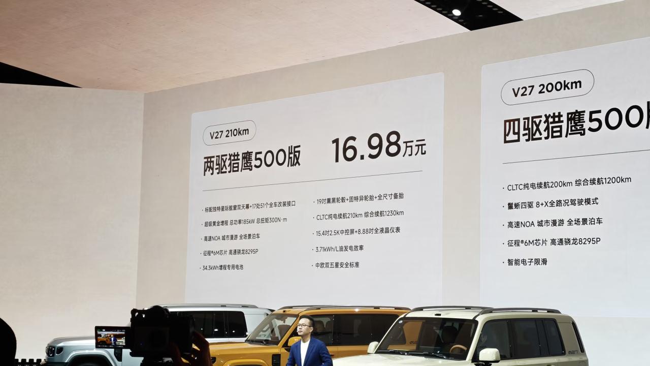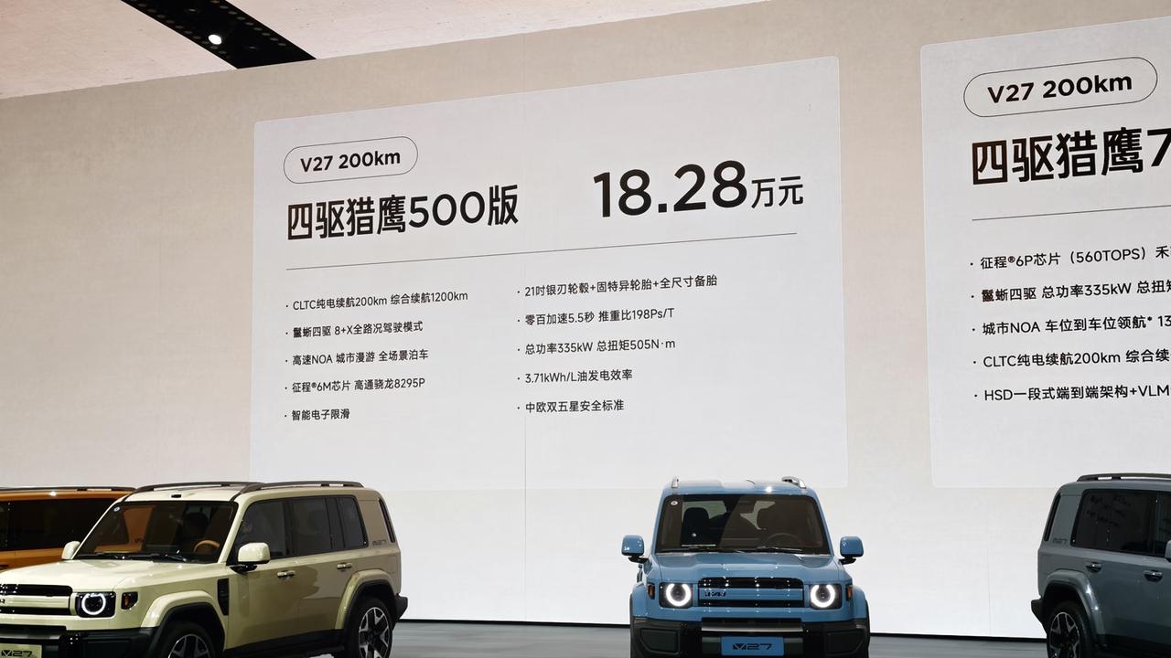 期待值很足,但是拖了很久才上市iCar V27终于公布价格了,19.98-19.98万元,不到20给你了激光雷达,200纯电续航大五座硬派方盒子SUV,就是硬刚比亚迪方程豹钛7,你觉得它能行吗?是不是晚了点,人家钛7要出闪充纯电版了。[大笑][大笑][大笑] 看看这顶配的特色配置,你们觉得有竞争力吗? ·征程6P芯片(560TOPS)禾赛激光雷达高通骁龙8295P ·21时银刃轮毂+固特异轮胎+全尺寸备胎 ·鬣蜥四驱总功率335kW总扭矩505N·m8+X全路况驾驶模式·零百加速5.5秒推重比198Ps/T ·城市NOA车位到车位领航135km/hAES紧急避障 ·黑科技MRC磁霸悬架 ·CLTC纯电续航200km综合续航1200km ·3.71kWh/L油发电效率 ·HSD一段式端到端架构+VLM云端大模型 ·中欧双五星安全标准