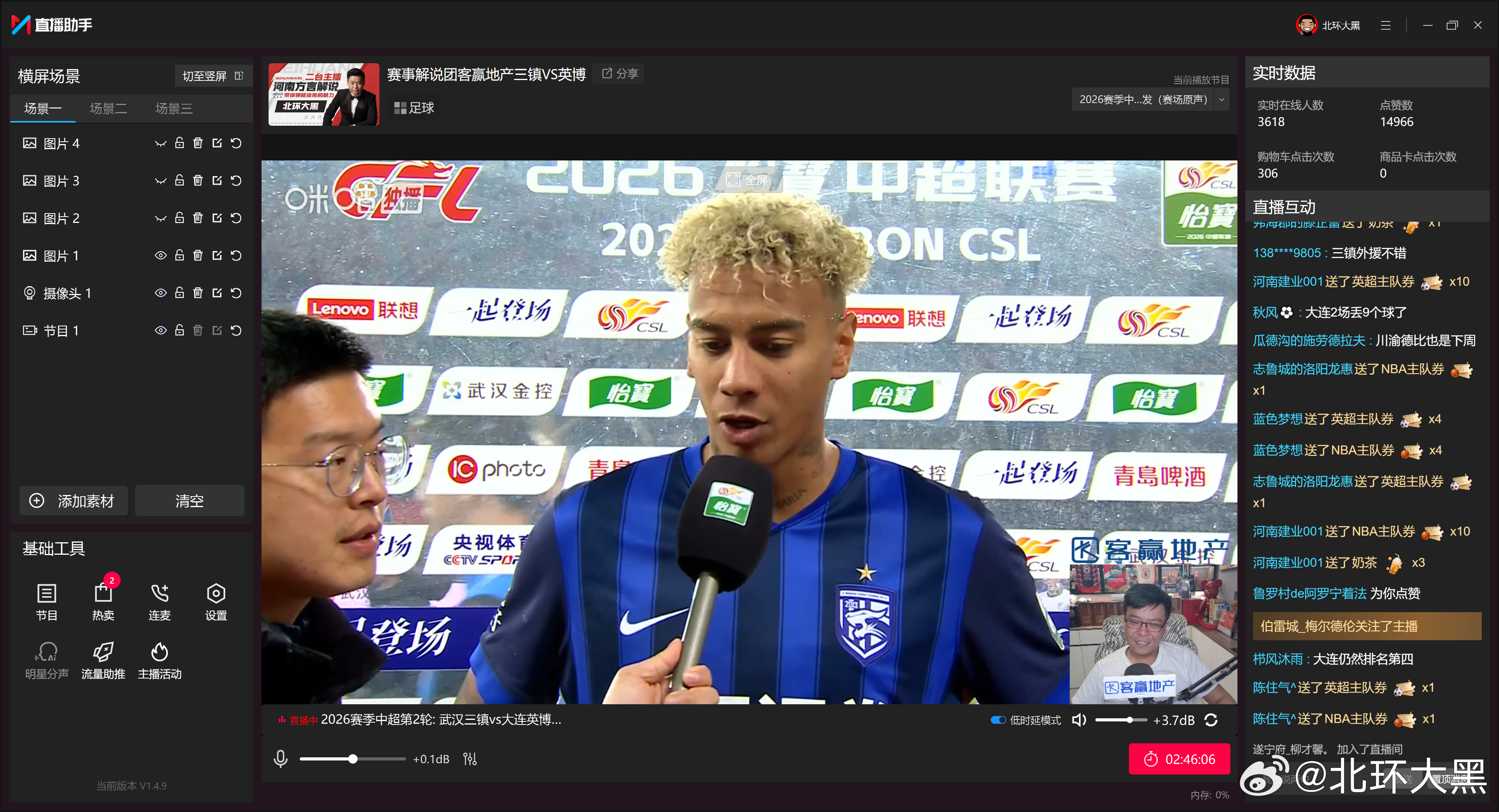 第一轮被我蛐蛐的卡迪斯,这场比赛开胡了~哈哈!主打一个蛐蛐谁谁牛逼是呗?武汉三镇4比1大连英博