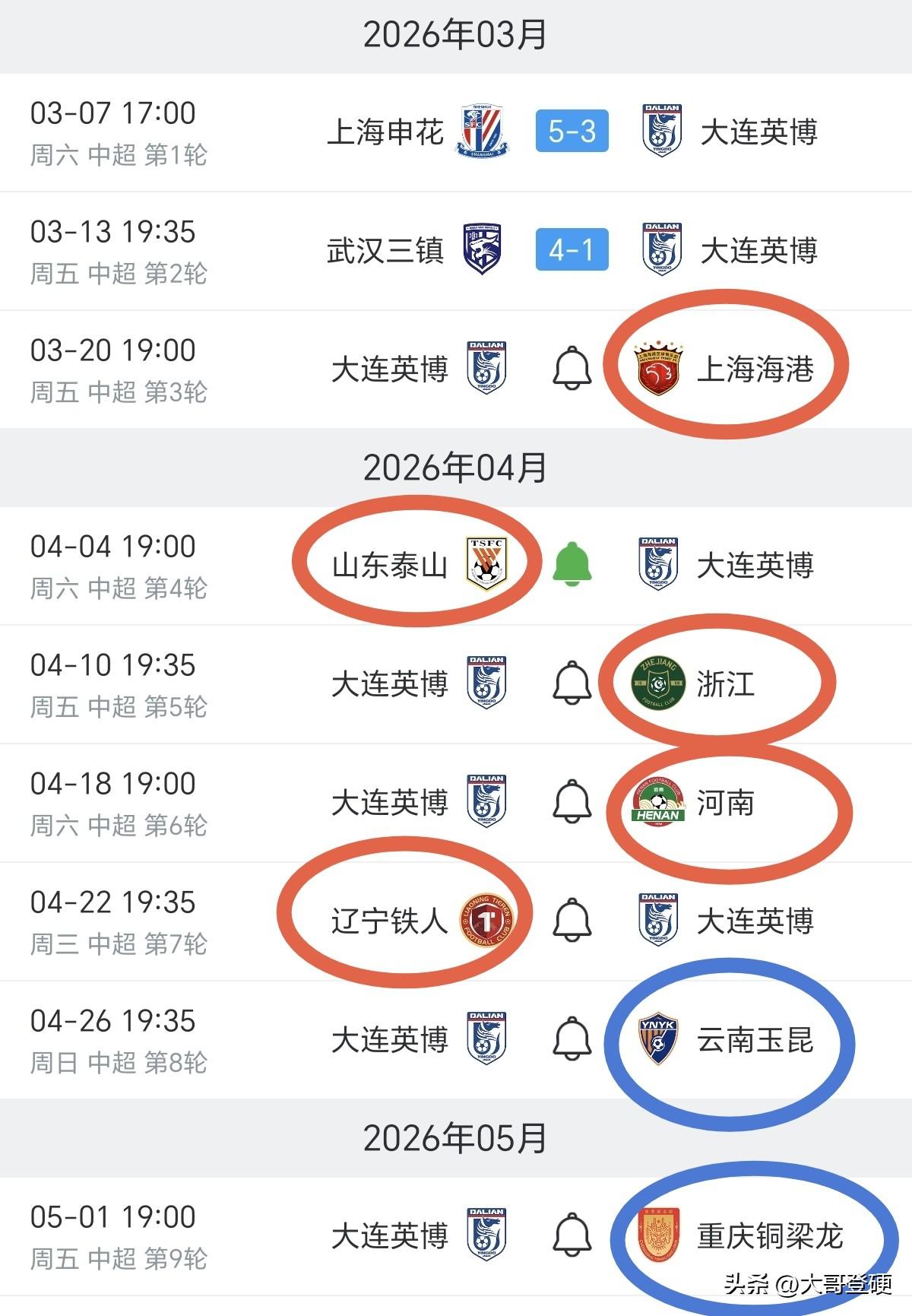 大连英博可能会迎来7轮不胜,提前研究一下保级吧[惊呆] 在客场1:4惨败给武汉三镇队之后,大连英博这个赛季的走势有点儿不妙了,按照目前的球队状态,联赛首胜遥遥无期[叹气] 因为接下来的五轮赛程,对于大连英博而言难度极大,面对上海海港队、山东泰山队、浙江队、河南队、还有客场挑战辽宁铁人队[得意] 目前看来,也就两个主场对阵云南玉昆和重庆铜梁龙,感觉还有赢球的希望吧[融化] 按照这个走势,大连真的需要好好研究一下保级问题,目前急需一场胜利来提振球队士气,不然的话,李国旭的帅位岌岌可危了[吃瓜群众]