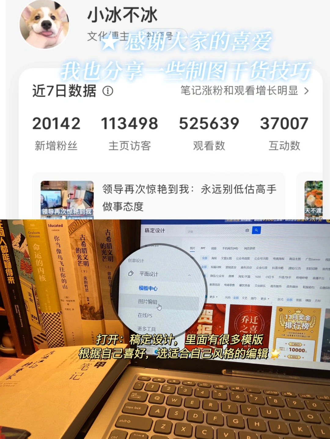 🌟制图软件——稿件设计。优质封面模板库,拼图、滤镜、文字等,用过很多App,稿定设计的构图最让我满意,模板够多,可适应不同风格的笔记。