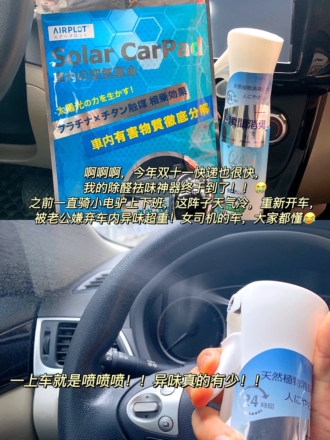 🛍今日心水好物:双十一入的AIRPLOT光能车垫+丝碧喷雾到了立刻用了几天!分解甲醛长效除味真的超赞!清新的空气真的很重要!