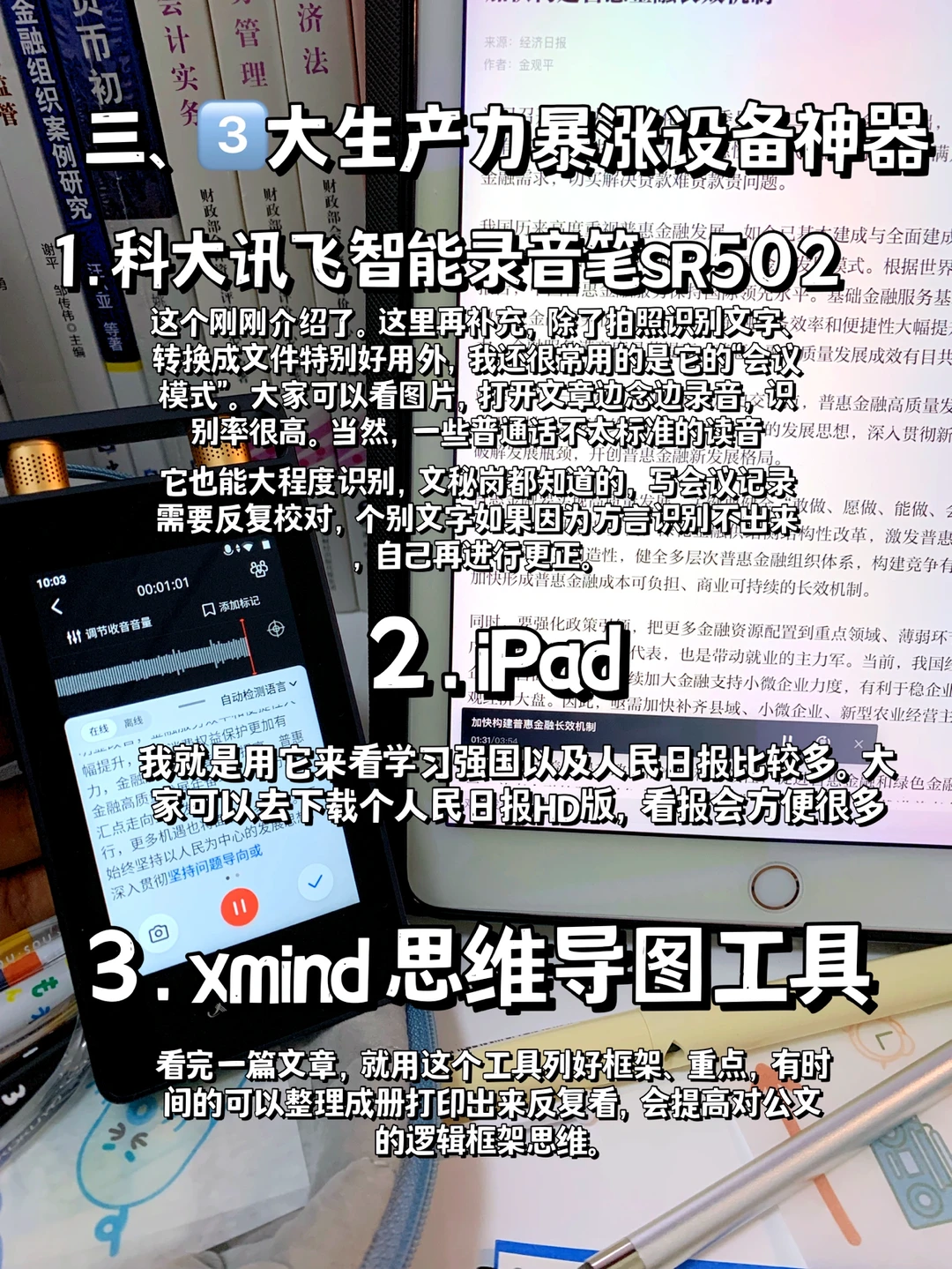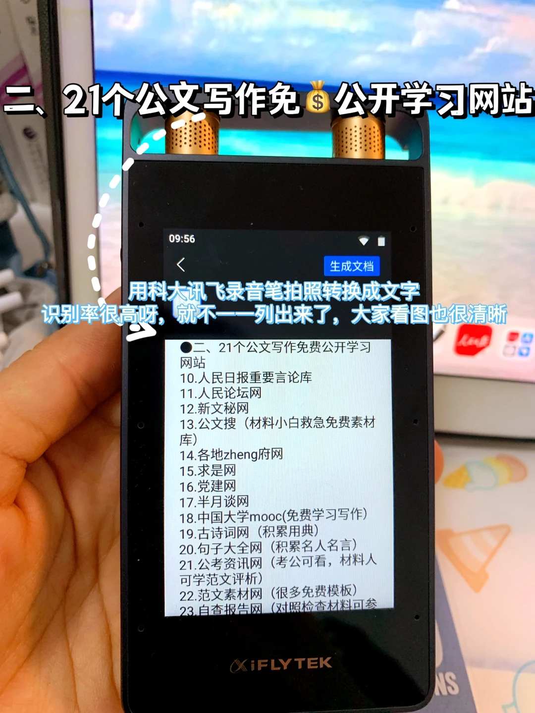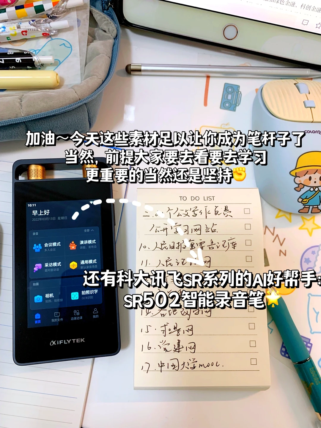 真心建议所有职场人都配备,特别是材料人❗️我愿称它为办公和效率神器!科大讯飞SR系列业内评价超好,超多AI功能,我这款录音笔自从我成为专职材料人就用上了,写会议纪要不要太香,不用反复听录音听得耳朵发疼,可以直接转换文字(我领导们普通话带点方言不算标准,但转换无压力,准确率贼高)。举办活动要写通讯稿,我会把它放在口袋,最远收音距离有15米,领导讲话的时候就录起来,活动结束通讯稿也能实时完成,马上发宣传,提高效率杠杠的
