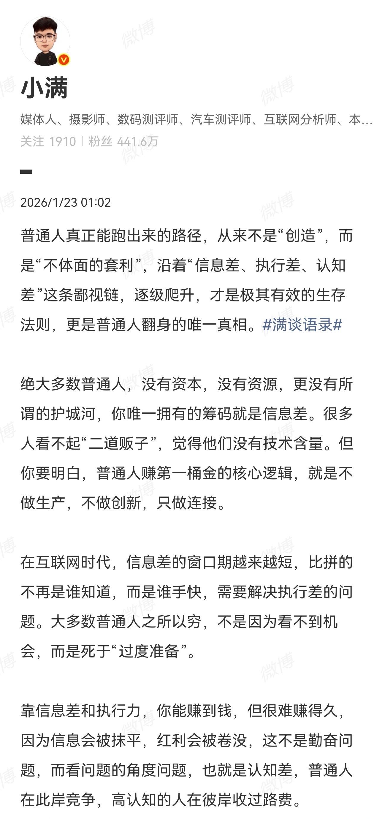 我们从小被教育,努力就会成功,但现实往往不是如此。工厂里每天加班十几个小时的人很努力,外卖员风里来雨里去也很努力,建筑工人一天十几个小时的体力活更努力。这些人,大多数一辈子都很难真正改变生活。满谈生活