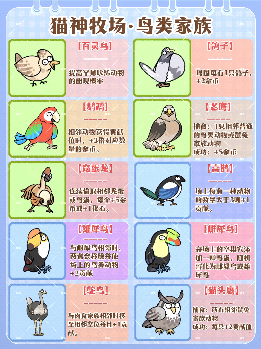 猫神牧场|鸟类家族图鉴合集~