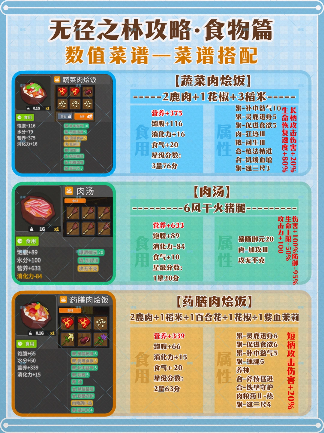 无径之林|后期菜谱+高营养+不同武器伤害