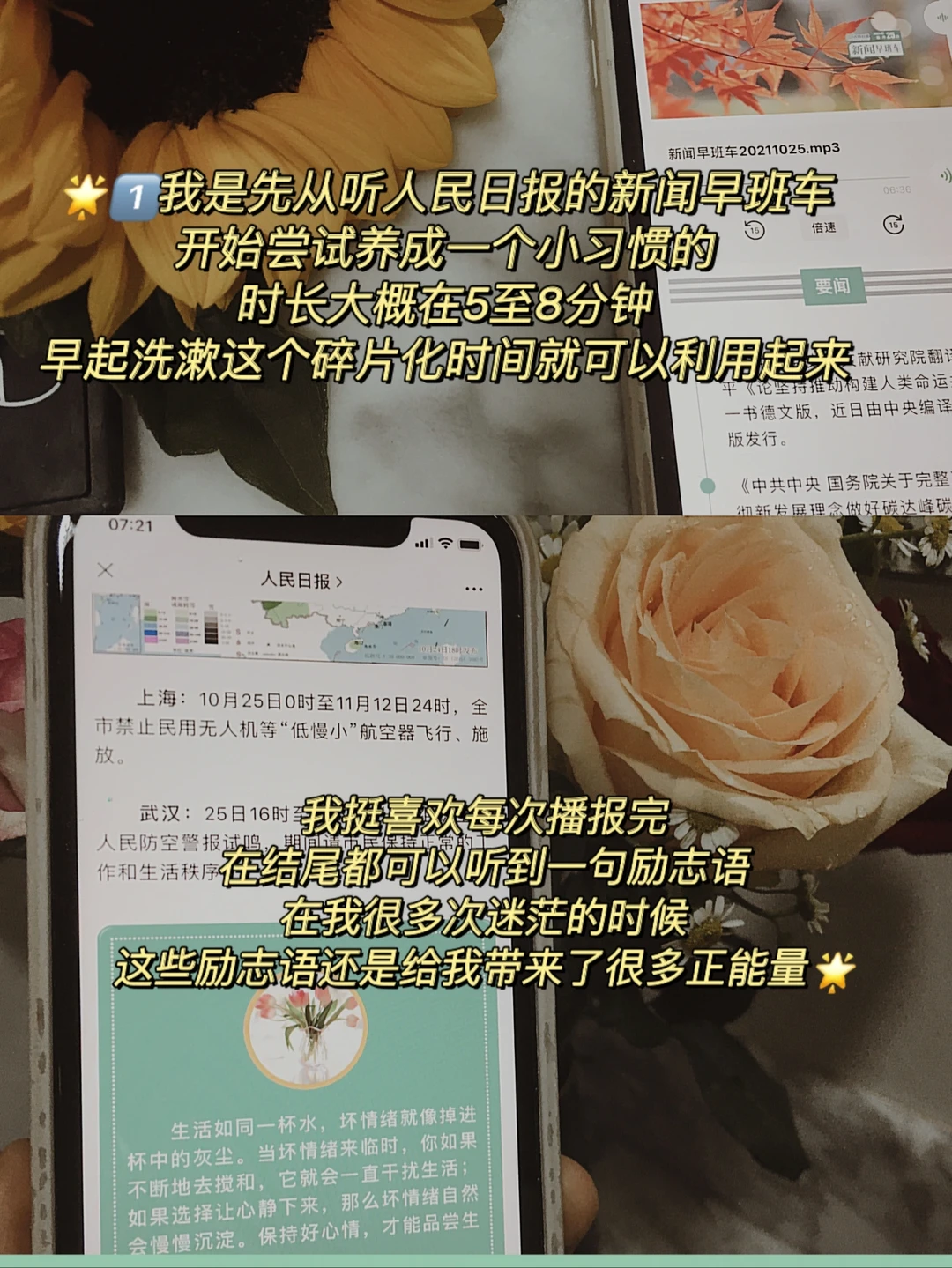 听新闻早班车、半月谈晨读课程、学英语、看纪录片等等,这些小习惯让我重新找到生活的节奏,再次体会到那种源于内心的充实感