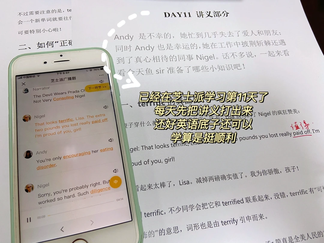 3.每天在芝士派打卡,今天已经打卡第11天了。我一开始比较顺利,基本上所有的测试都是一次性过,包括选项、跟着朗读等等。