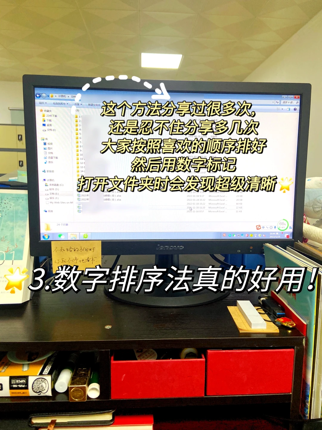 这个方法我已经分享过很多次了,但还是忍不住多分享几次。大家按照工作内容将事项排好,然后用阿拉伯数字标记,打开文件夹时发现界面很清晰,找资料真的很方便。所以去年,当别人要我翻材料时,我能够最快在10秒内就准确找出文件。
