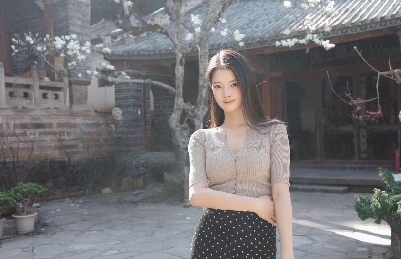 端庄大方,气质清新,人面桃花