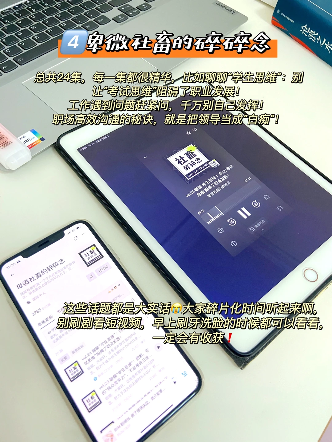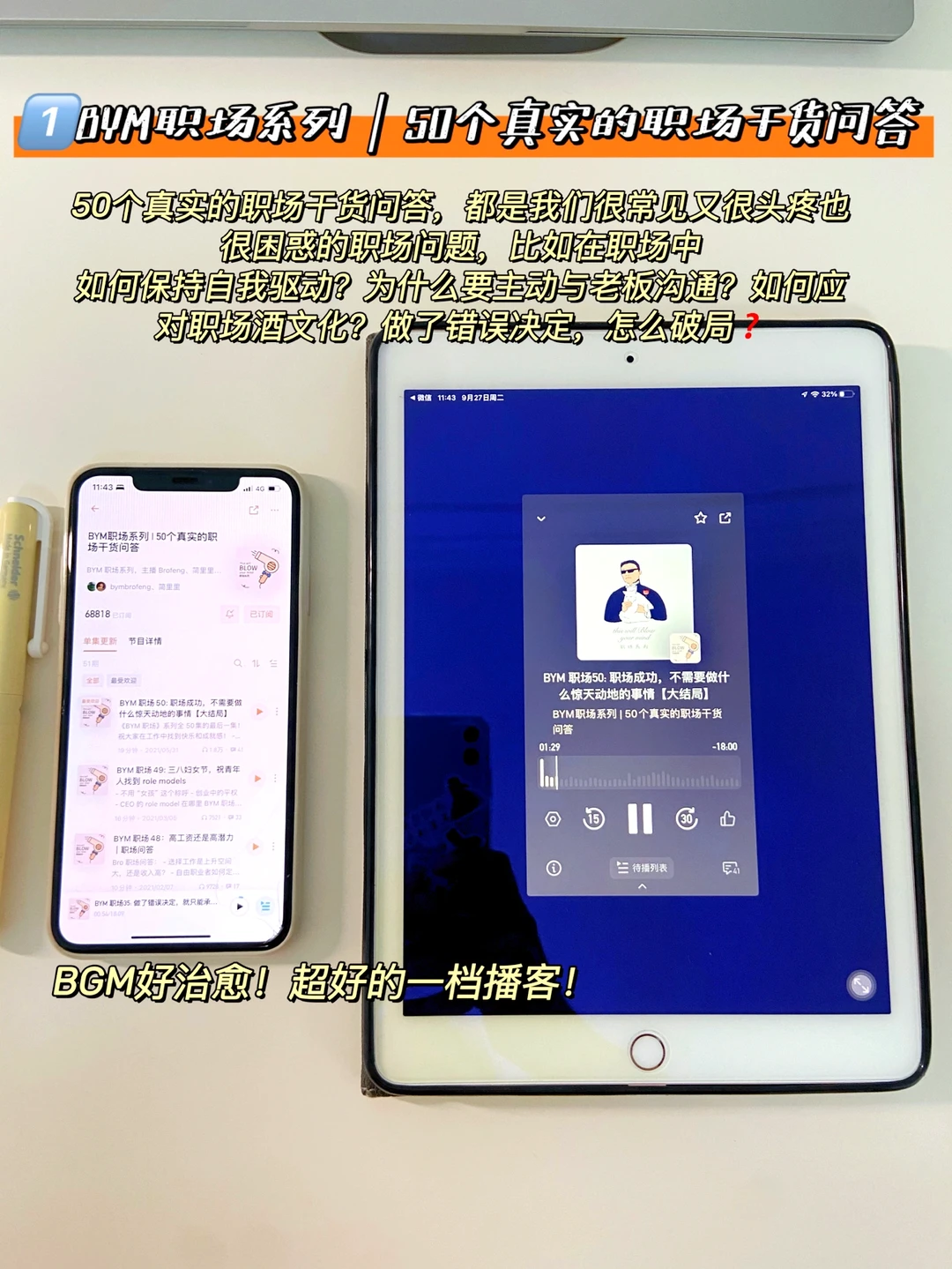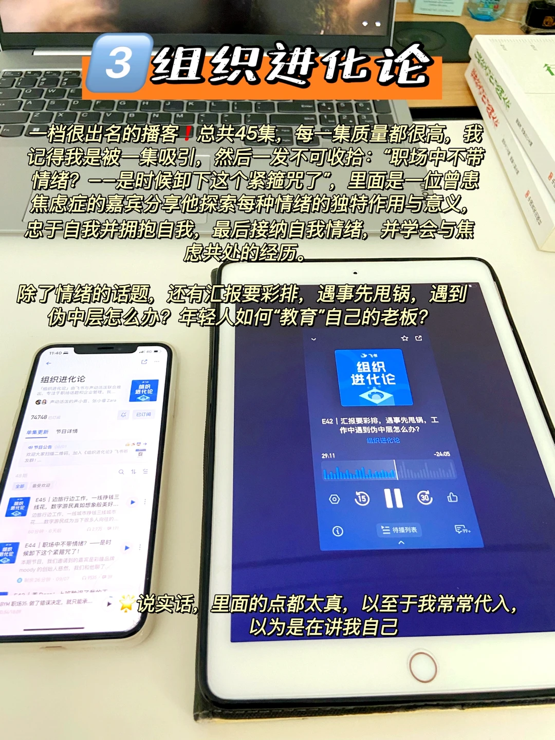 一档很出名的播客❗️总共45集,每一集质量都很高,我记得我是被一集吸引,然后一发不可收拾:“职场中不带情绪?——是时候卸下这个紧箍咒了”,里面是一位曾患焦虑症的嘉宾分享他探索每种情绪的独特作用与意义,忠于自我并拥抱自我,最后接纳自我情绪,并学会与焦虑共处的经历。除了情绪的话题,还有汇报要彩排,遇事先甩锅,遇到伪中层怎么办?年轻人如何“教育”自己的老板?
