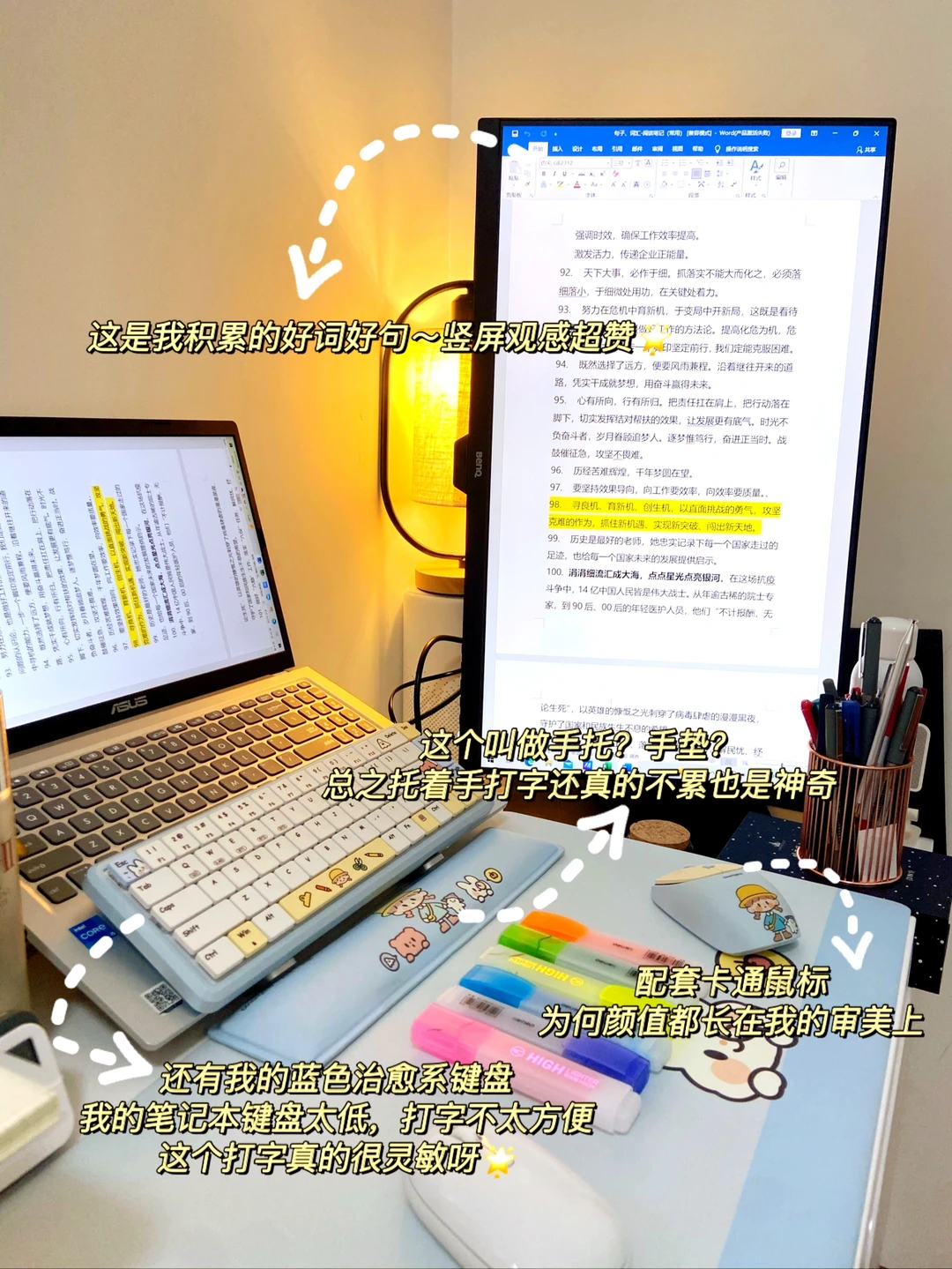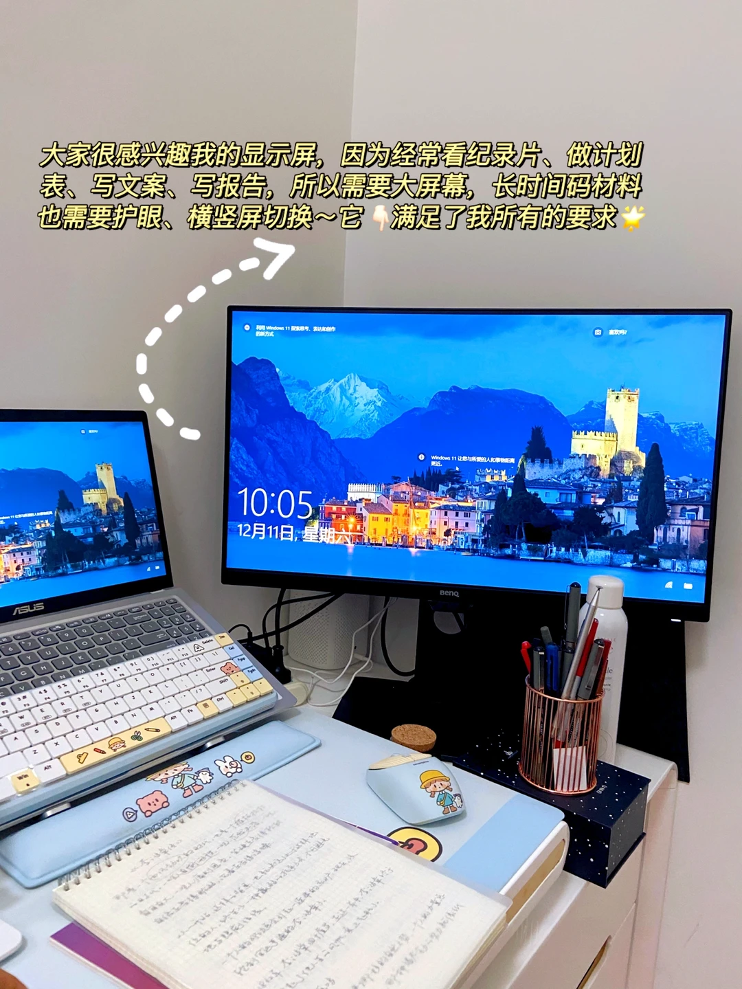 大屏幕、护眼、横竖屏切换,我的显示屏是我最爱~还有ColorReco键盘也超级喜欢,蓝色高颜值真的很治愈,年末码材料的小伙伴,一起向前奔跑!