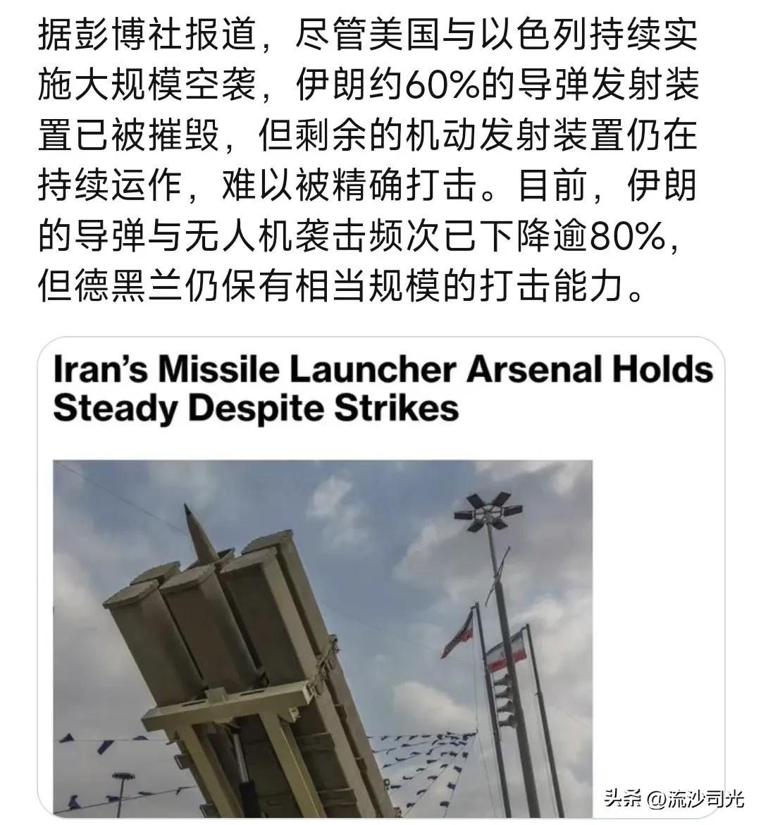据彭博社报道,尽管美国与以色列持续实施大规模空袭,伊朗约60%的导弹发射装置已被摧毁,但剩余的机动发射装置仍在持续运作,难以被精确打击。目前,伊朗的导弹与无人机袭击频次已下降逾80%,但德黑兰仍保有相当规模的打击能力 美军参谋长联席会议主席、上将丹·凯恩表示:"我们已将打击伊朗布雷能力列为优先目标,包括其布雷舰艇、海军基地及弹药库,以及可能威胁霍尔木兹海峡航运的导弹系统。"