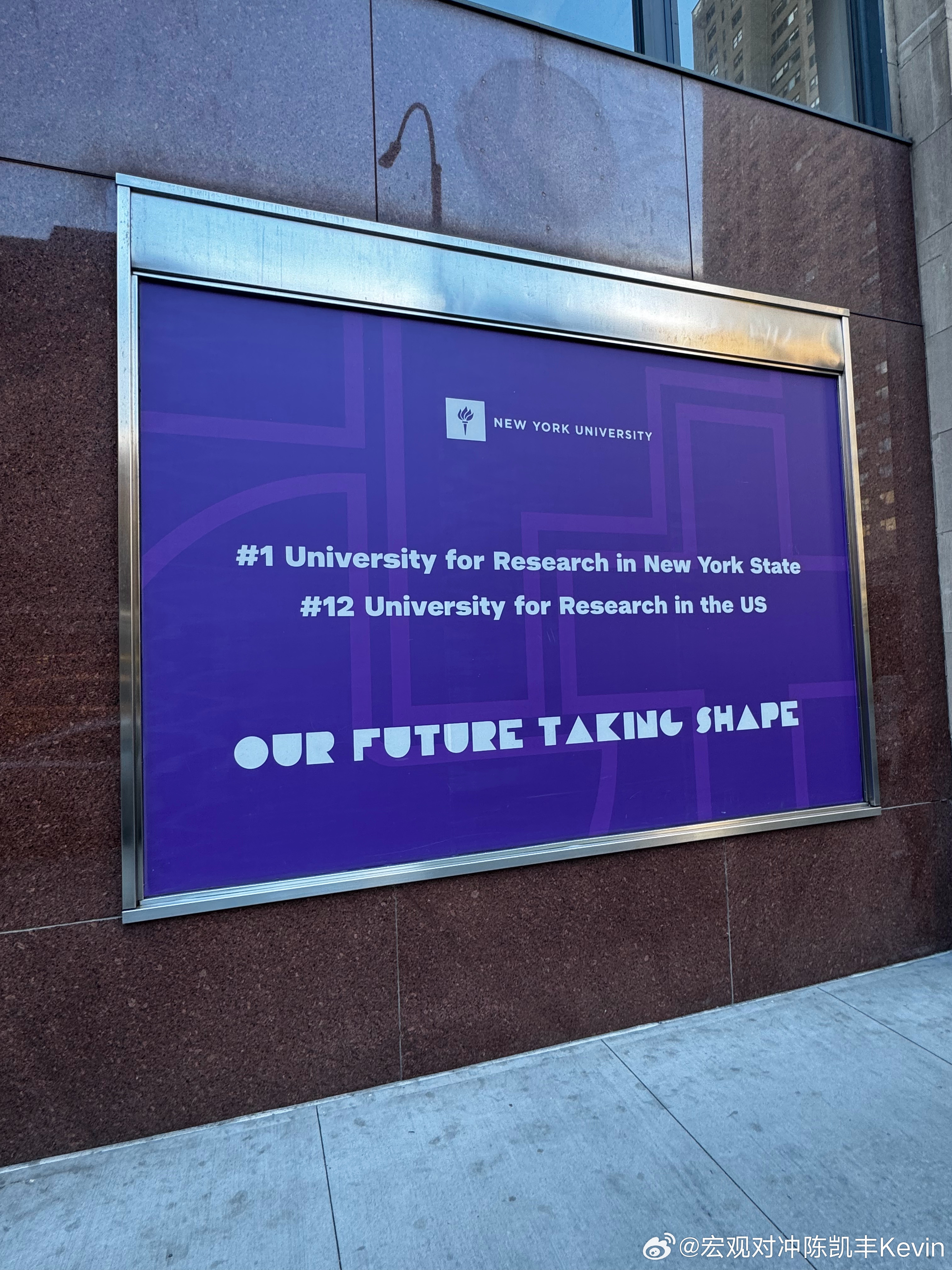 走路去见我们的高级顾问吃饭,请教他下一步对我们工作方向的建议,路过纽约大学,写的不错啊“纽约州研究排名第一的大学,全美研究型大学排名第十二”美国纽约纽约大学凯丰基本面曼哈顿