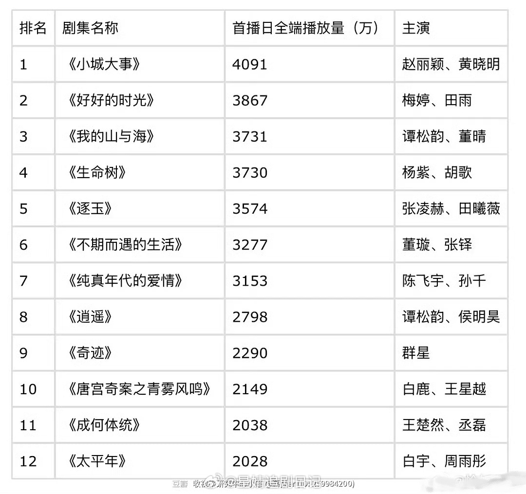 2026剧集首播日全端播放量前十二名