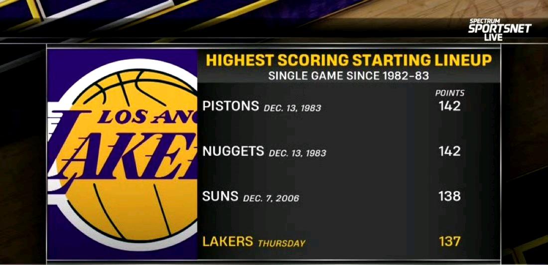 上赛季湖人在打完66场比赛后的战绩:41胜25负,西部第三,首轮被森林狼淘汰。 本赛季湖人在打完66场比赛后的战绩:41胜25负,现在也是西部第三,森林狼也是第六。难道说…… 湖人对阵公牛的首发拿了137分,NBA历史第四高。最终142-130击败公牛。