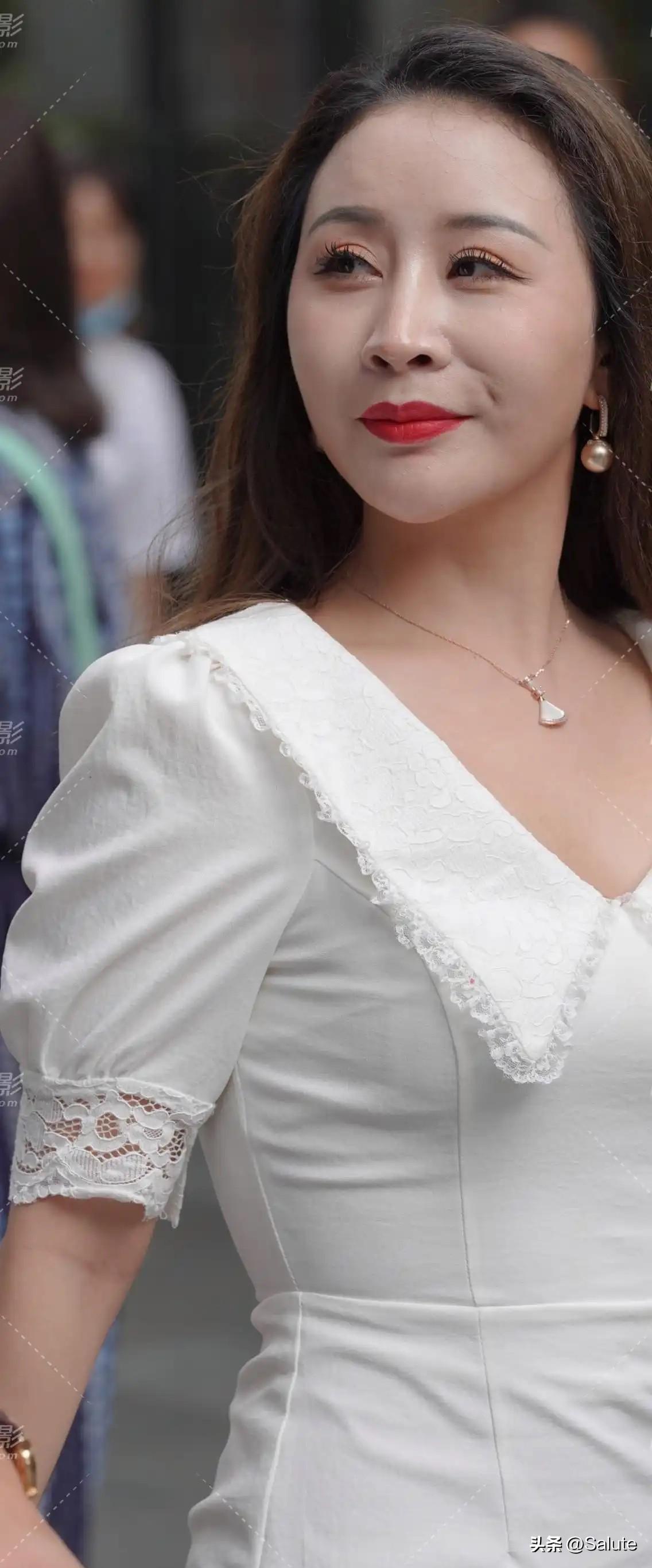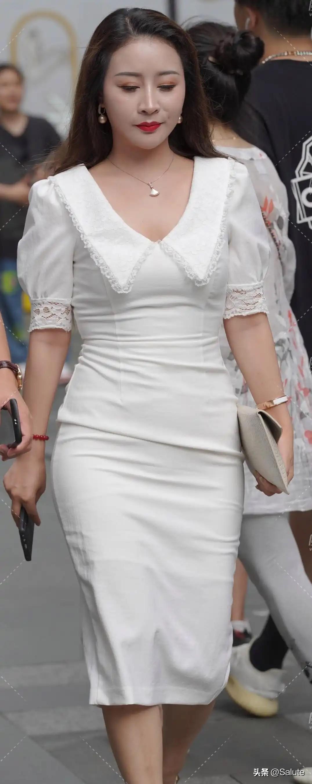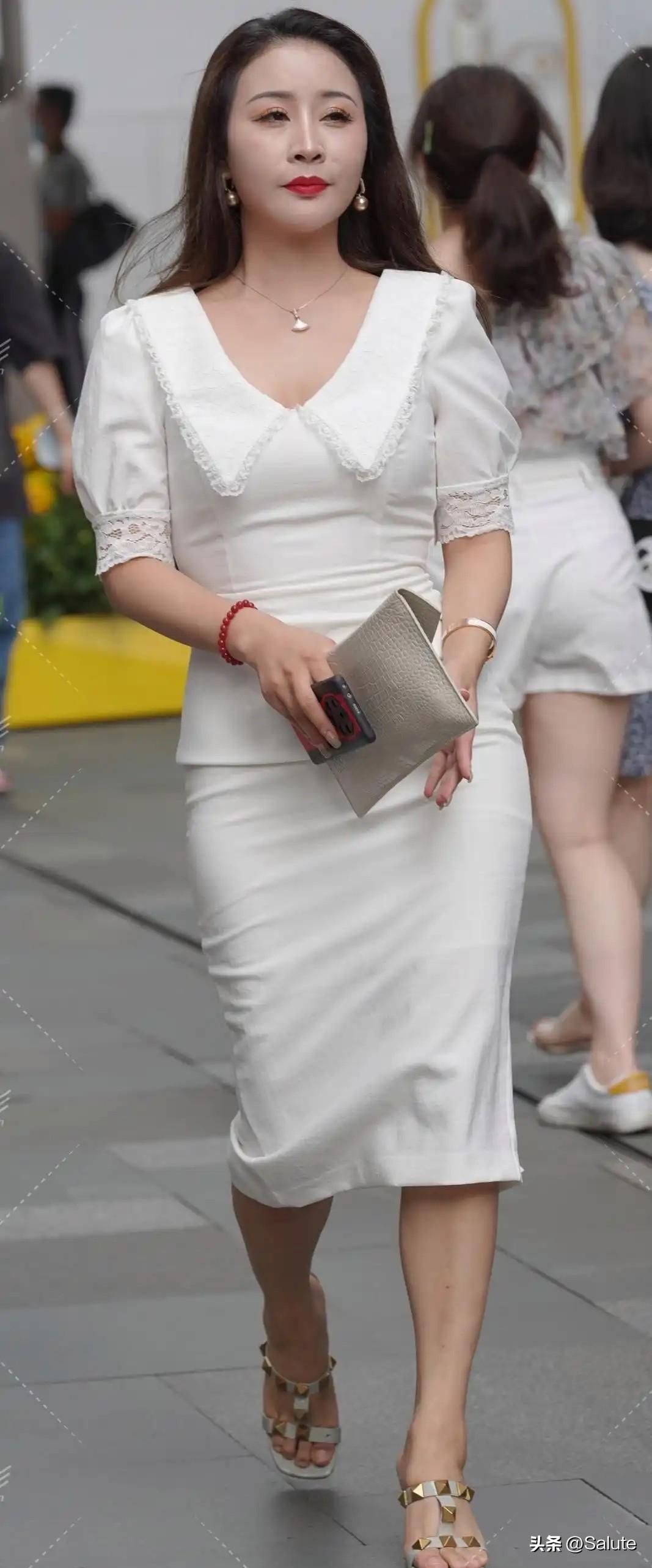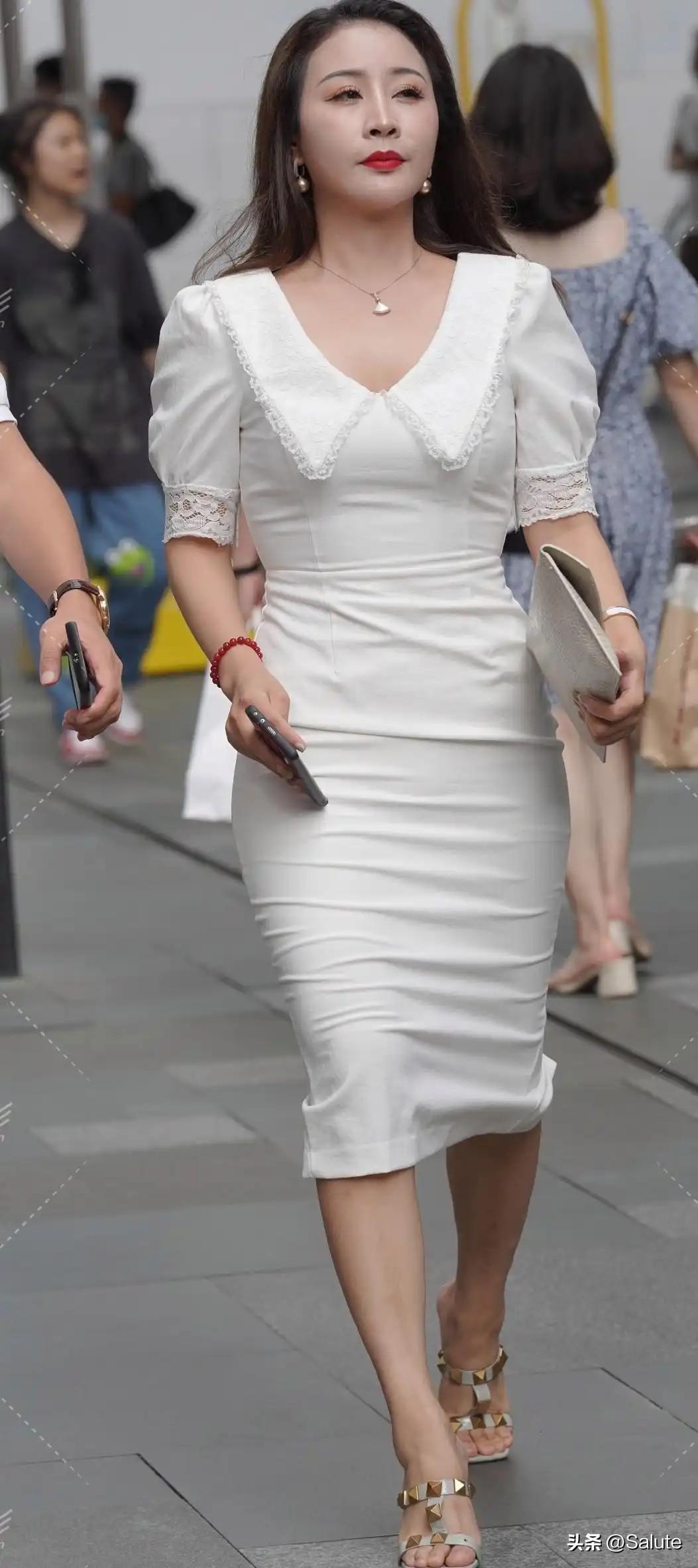 优雅白裙,自信步伐,都市女性风采