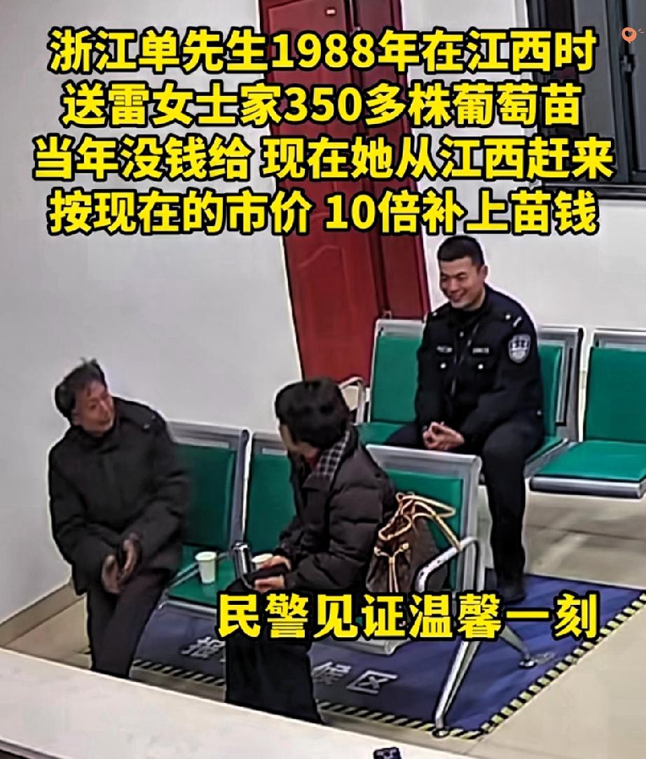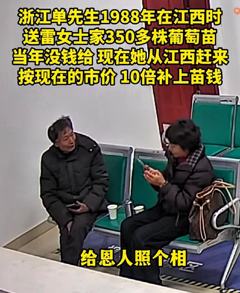 38年前一筐免费的葡萄苗,竟让江西阿姨记了大半辈子,找到恩人后直接按市价10倍还钱:“绝不能让好人吃亏!” 1988年的雷阿姨家穷得揭不开锅,想种葡萄谋生却凑不够苗钱。 浙江单大爷大老远背来350株苗,看她窘迫只收了路费,直言“你富起来比啥都强”。 靠着这批苗,雷阿姨从土坯房住上小洋楼,可心里的“良心债”从没放下。 如今在民警帮助下找到早已忘事的单大爷,她硬塞过去厚厚一沓现金。 其实善良从不是单向付出,单大爷的随手相助是光,雷阿姨的念念不忘是暖。 “滴水之恩,涌泉相报”不再是一句挂在嘴边的空话,而是雷阿姨用38年光阴写下的最动人的情书。 你有没有被陌生人的善意温暖过?
