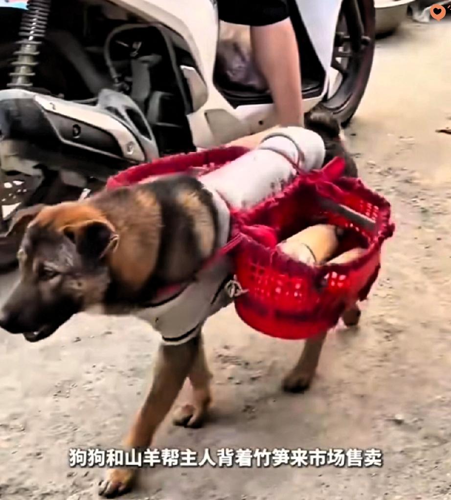 市场里的暖心一幕,女子背着大筐竹笋赶路,身后竟跟着3个“得力助手”——两只狗各驮着小筐,山羊直接扛着两捆鲜笋! 它们迈着小碎步紧紧跟着,不吵不闹,到摊位后乖乖站定,等着主人卸竹笋。 没有嬉闹,只有稳稳当当的陪伴,活脱脱像三个懂事的孩子,在帮家里分担生计。 其实动物哪懂什么“干活”,不过是感受到主人的辛苦,用自己的方式回应罢了。 你对它掏心掏肺,它就用一生忠诚相报,这种双向奔赴的信任,比任何训练技巧都管用。 都说万物有灵,这些默默出力的小生命,值得被好好善待。 你见过最通人性的动物是什么样的?