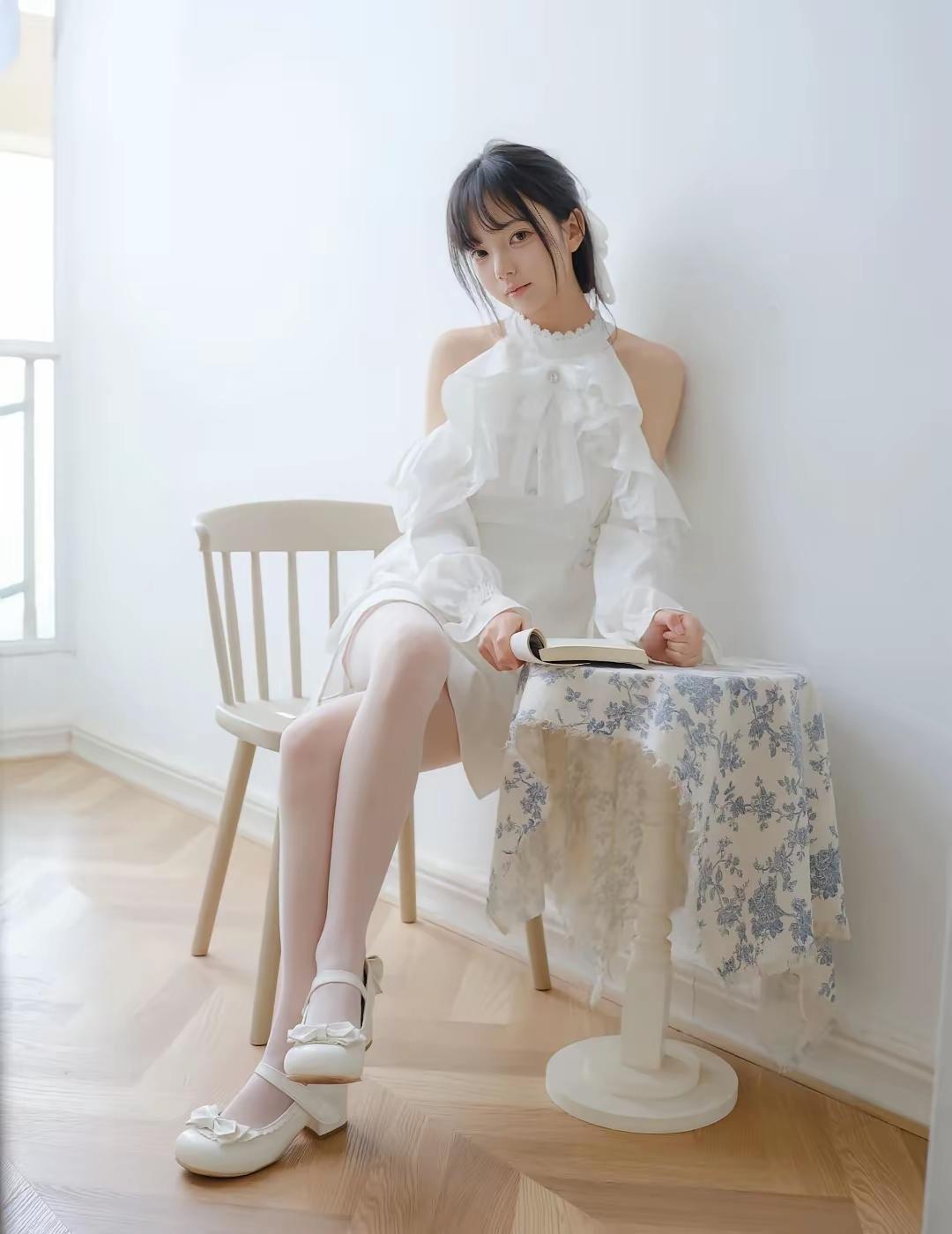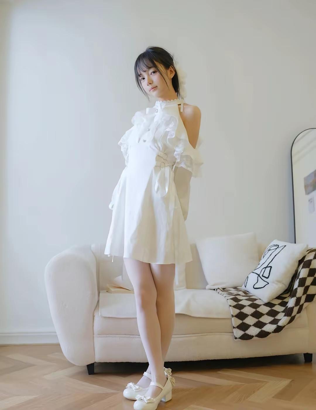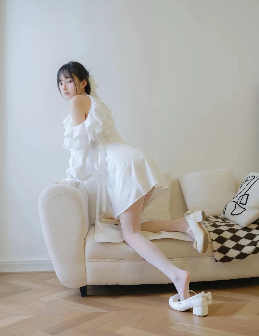 优雅少女风,白色连衣裙搭配精致发饰,尽显甜美与优雅。