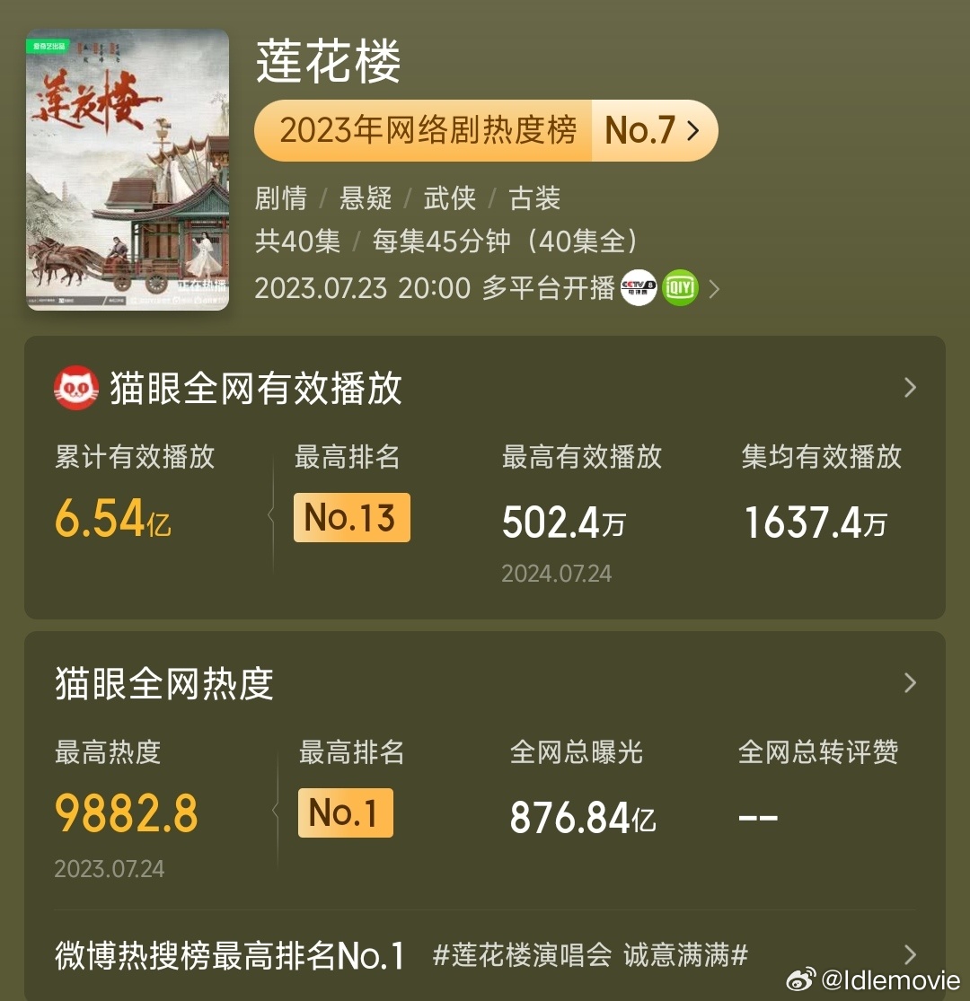 《莲花楼》的爆尾不断,足见 爆款从来不是一时的热搜,而是四面八方的观众的共同托举;出圈从来不是圈地自嗨,而是大众的喜闻乐见;实力从来不是仅粉丝可见,而是已至高山仍然精进。为成毅,跑一百步,《两京十五日》《英雄志》不见不散。