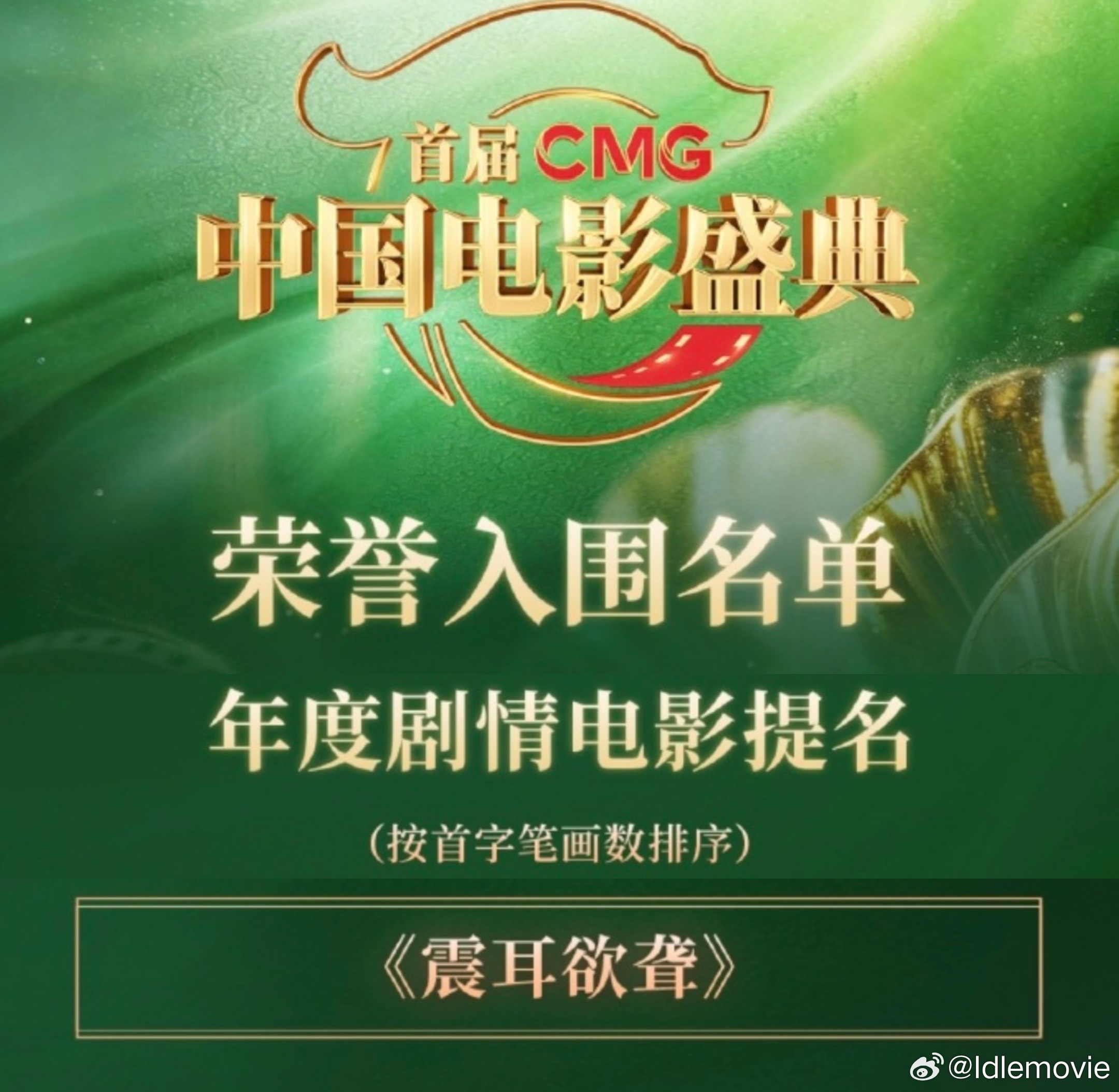 CMG中国电影盛典入围名单在入围名单里看到了檀健次的《震耳欲聋》,三次,恭喜恭喜。