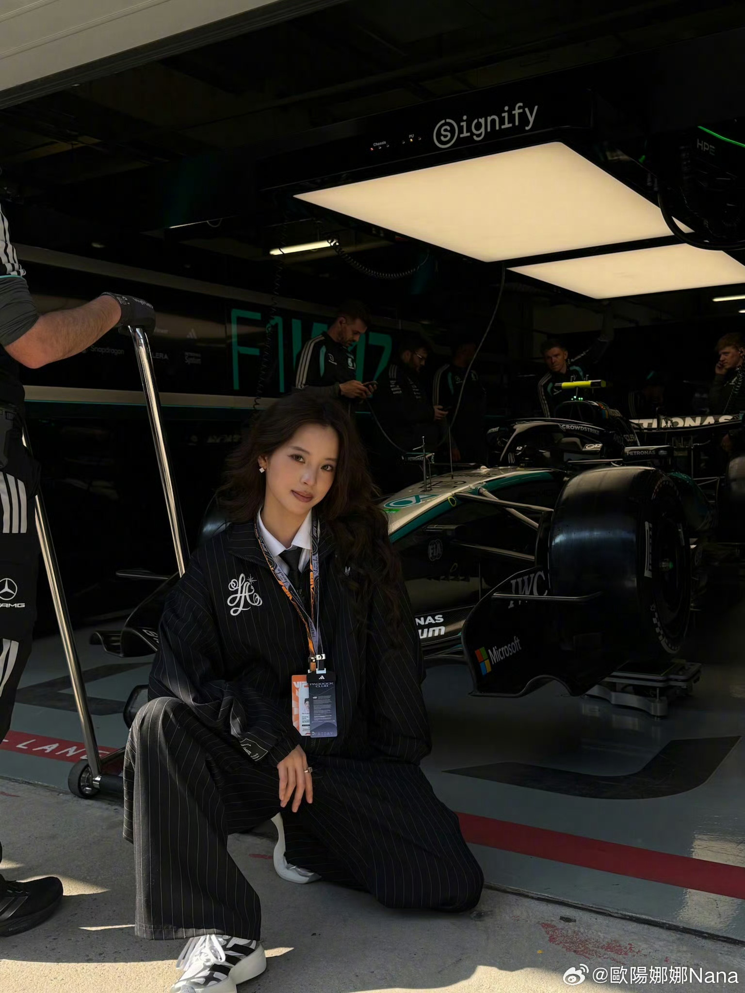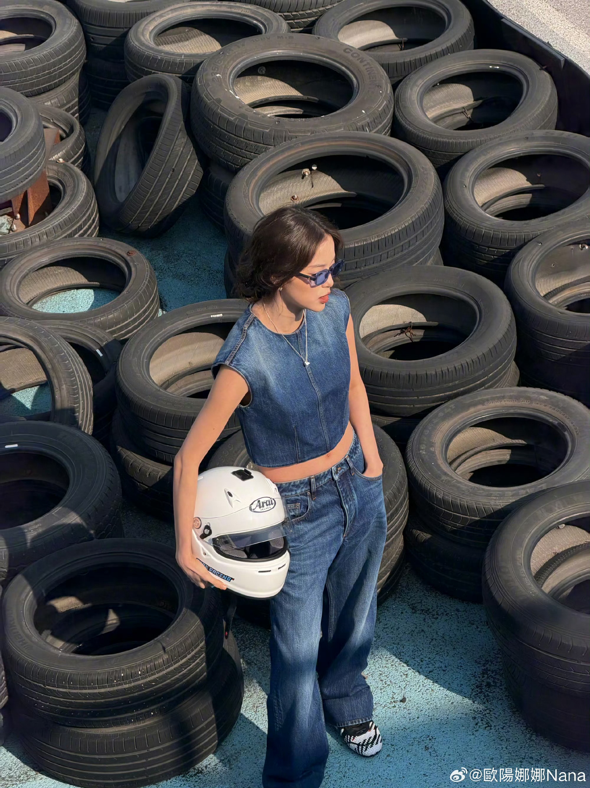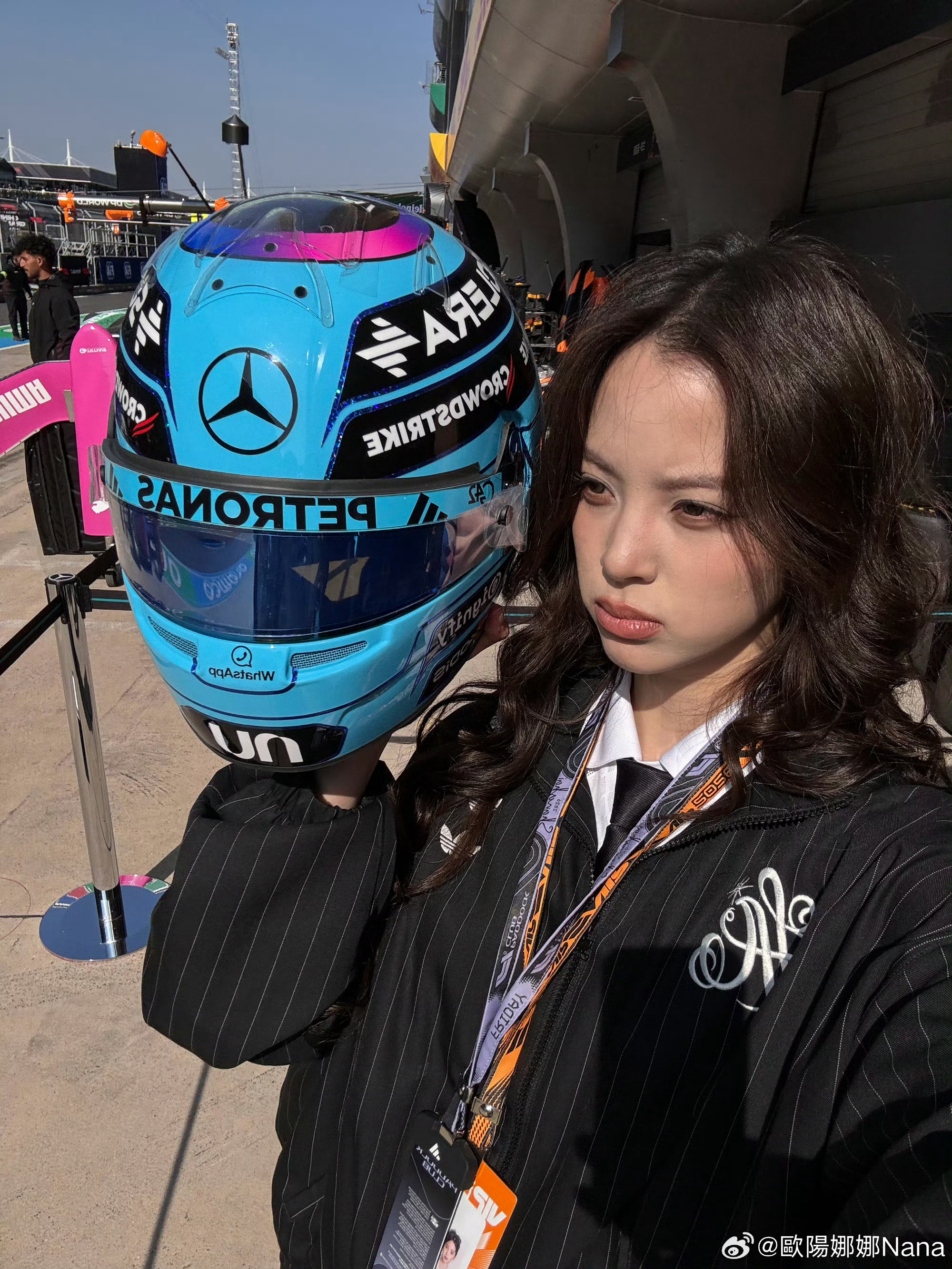 欧阳娜娜上海f1plog 上海f1plog掉落!牛仔马甲利落又时髦,条纹西装气场拉满,赛车场里的甜酷少女,谁看了不心动