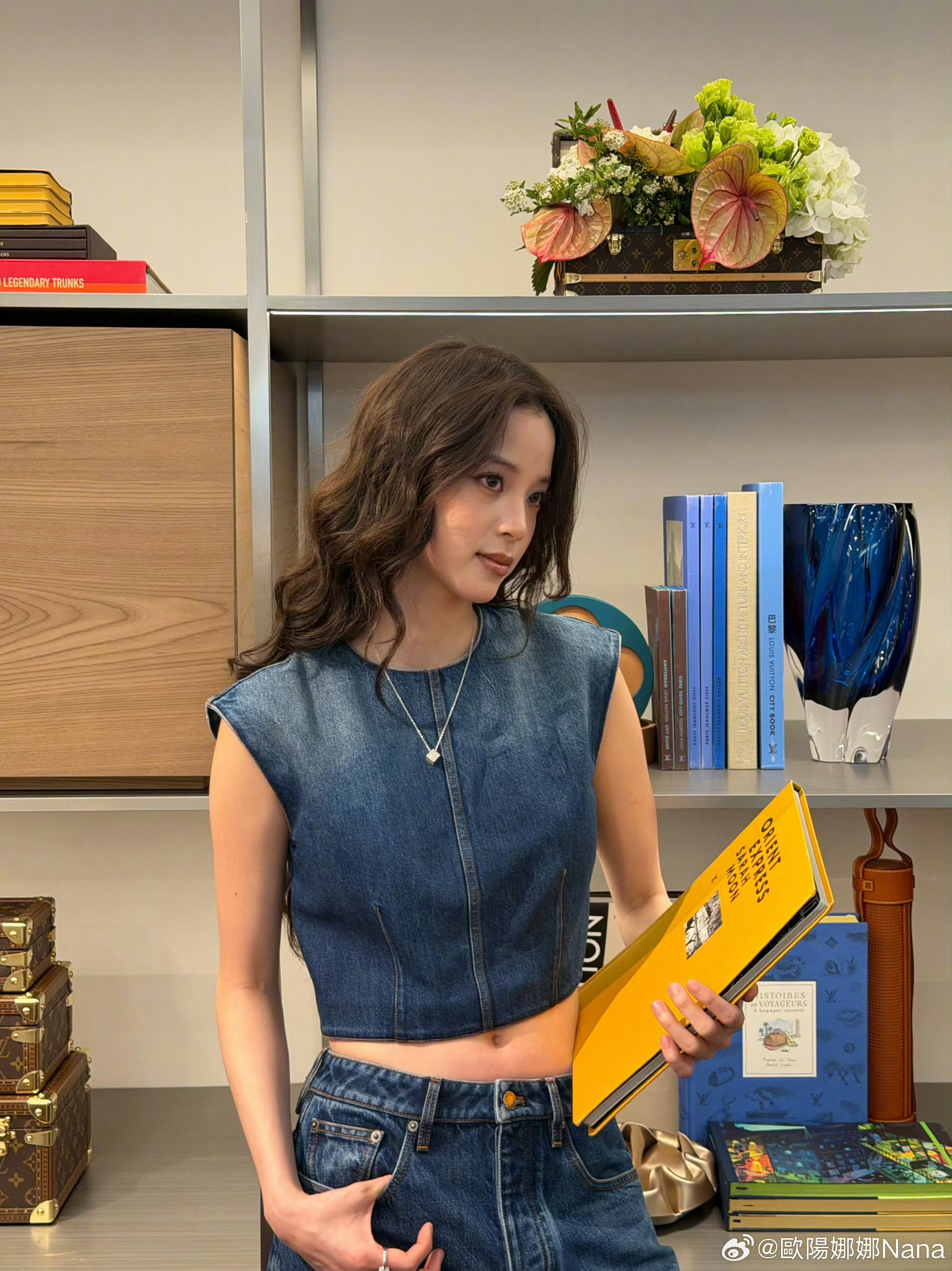欧阳娜娜上海f1plog 上海f1plog掉落!牛仔马甲利落又时髦,条纹西装气场