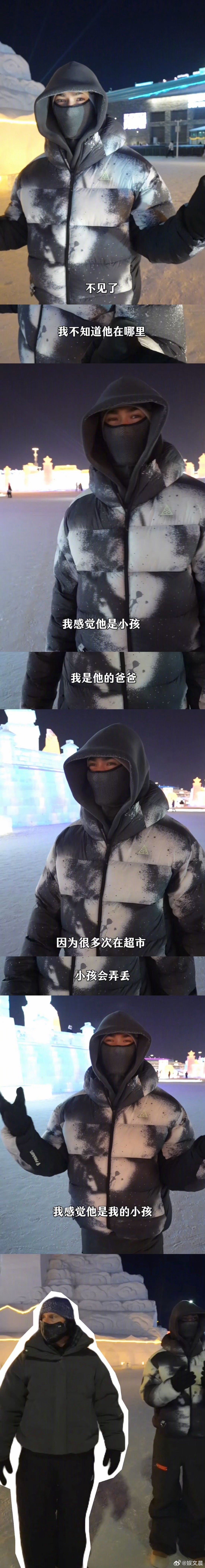 米卡说自己像爸爸的爸爸 爸爸在冰雪大世界沉浸式拍照,米卡在冰雪大世界沉浸式找爸爸,这种父子相处模式太有爱了,老米完全没发现自己被盯梢。