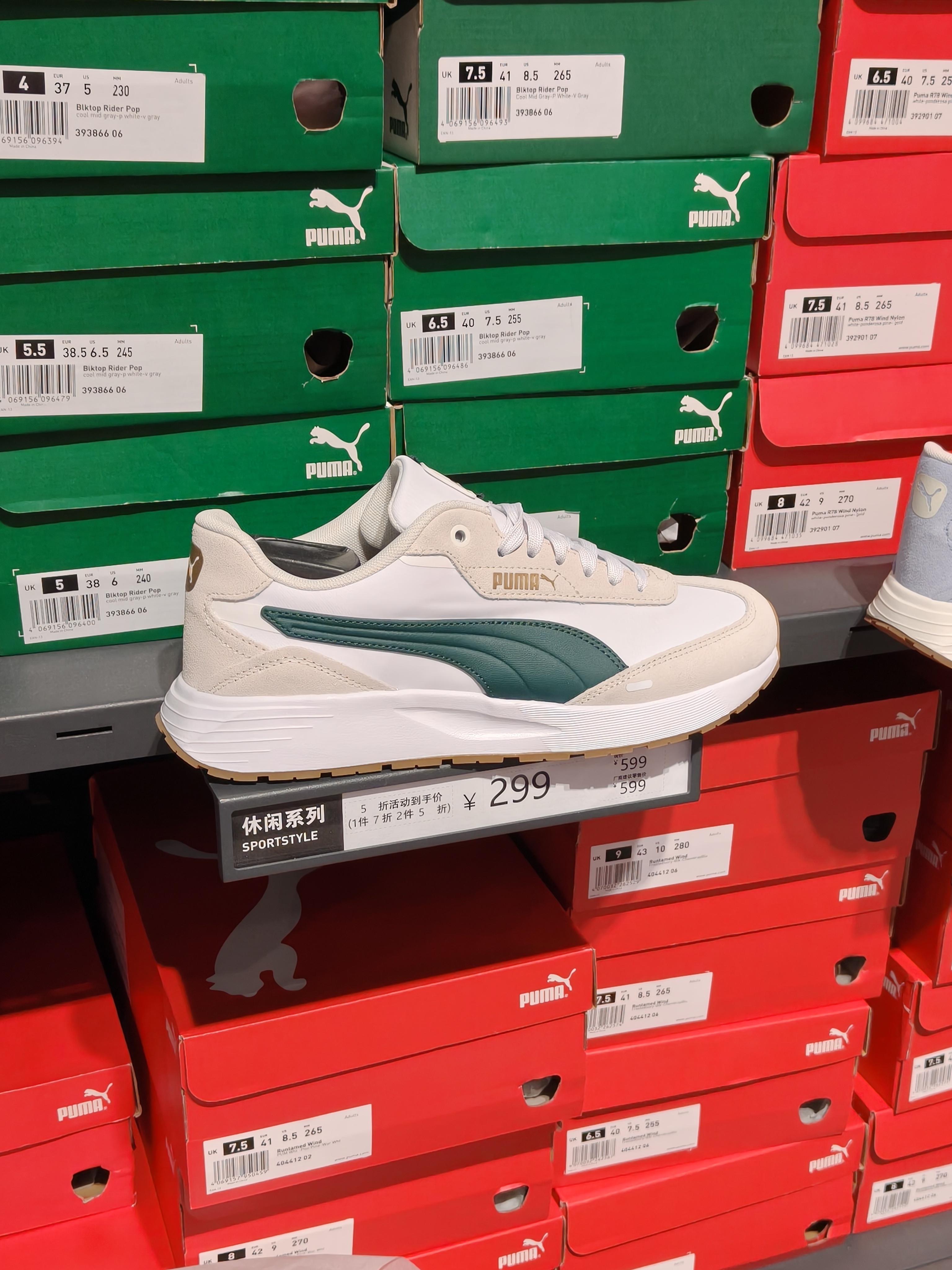 老婆带着我妈和我三姨逛街买衣服,上午11点开始,到晚上7点30才意犹未尽勉强结束去吃饭,女人貌似都有一逛街就体力无限的技能啊,太哈人了。来都来了,我也随便看看买了双彪马的老登鞋子,穿着走路、开车很舒服,价格在299基础上还有折扣,真挺不错。