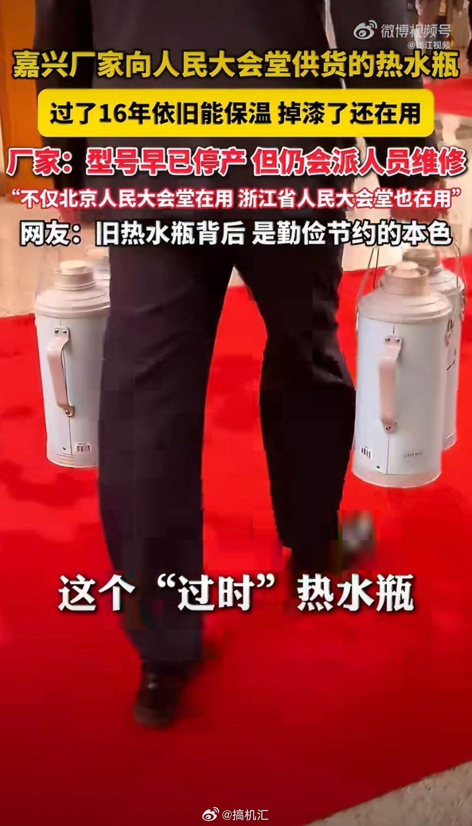 人民大会堂的同款老式热水瓶已停产,过了16年依旧还保温,掉漆了还在用,品质真的很好。节约也是咱中华民族的传统美德。这次热水壶意外走红,能不能像去年那个瑞安不锈钢锅一样复产?不过有了电热水壶后,这种传统的热水壶真的很少用了。