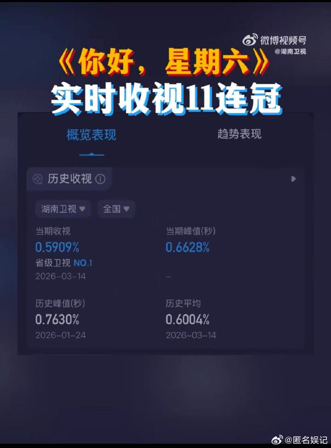 hi6收视11连冠你好星期六恭喜你好星期六11连冠,高能不断笑点密集,收视一